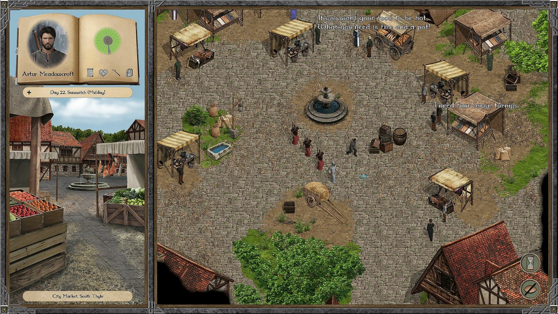 - Explore a vibrant and dynamic world with realistic day/night-cycles, seasons, weather changes, and townsfolk working their shifts and meeting at the local tavern after hours.