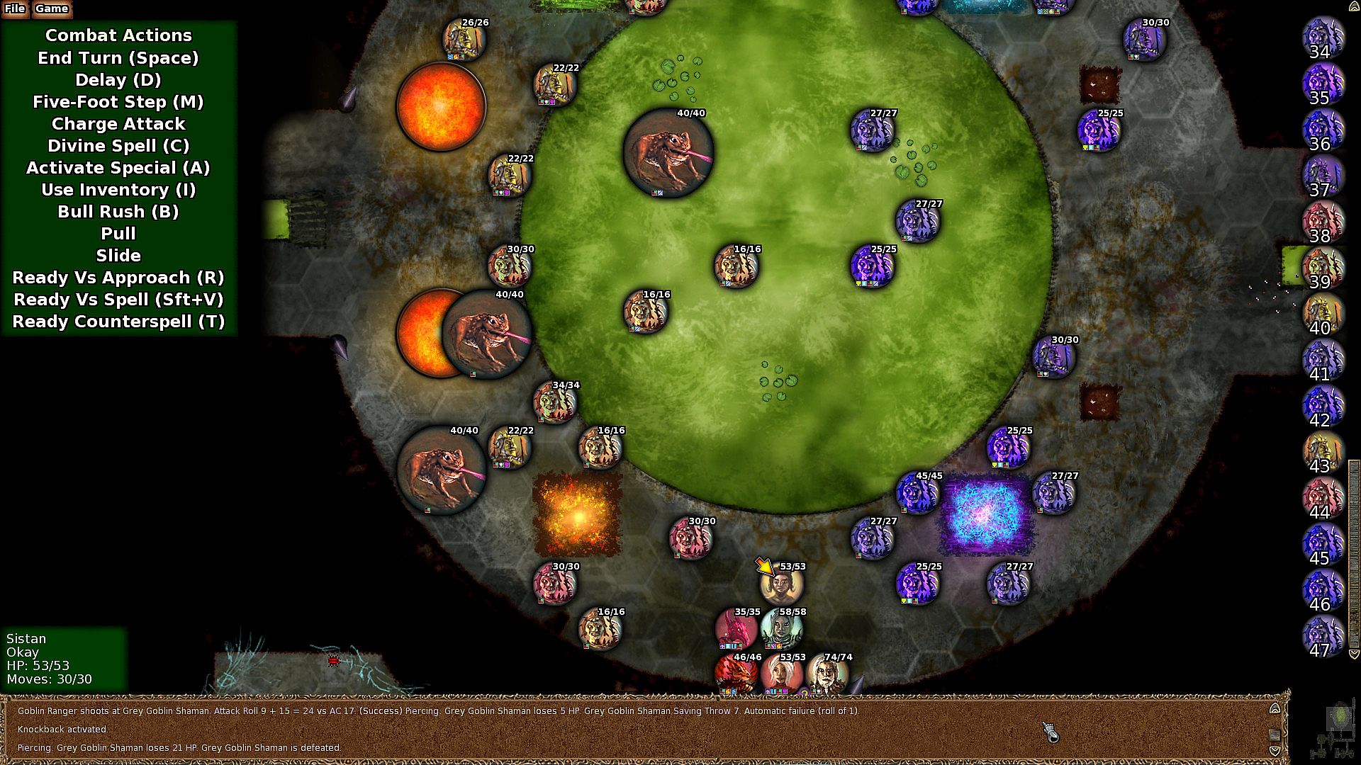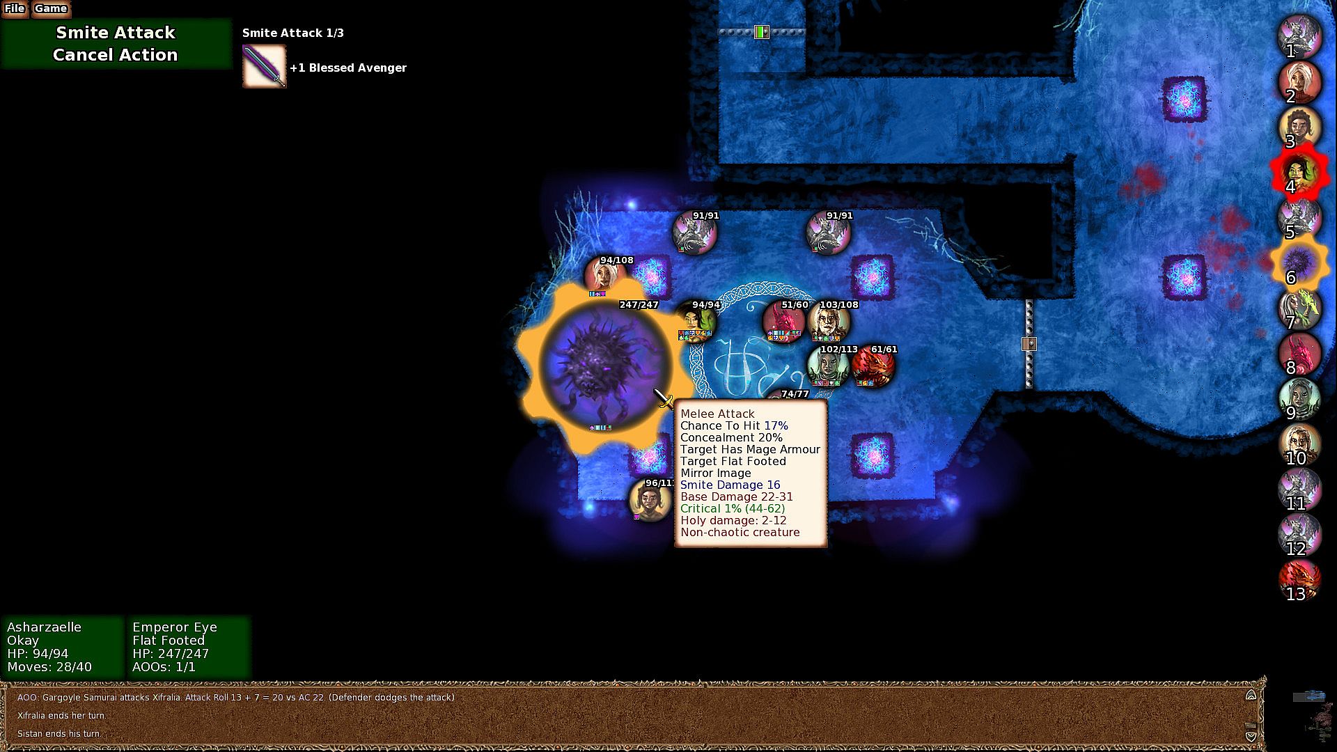 - Advanced emergent Artificial Intelligence. Enemies act as a group and support each other. They can use special actions like Grapple, Trip, Disarm, Sunder, Feint, Bull Rush, Ready Versus Spell or Swallow Whole and other tactics like taking a Five-Foot step before casting Maximised Fireball. They might use a Wind spell to dissipate the player's Acid Fog.