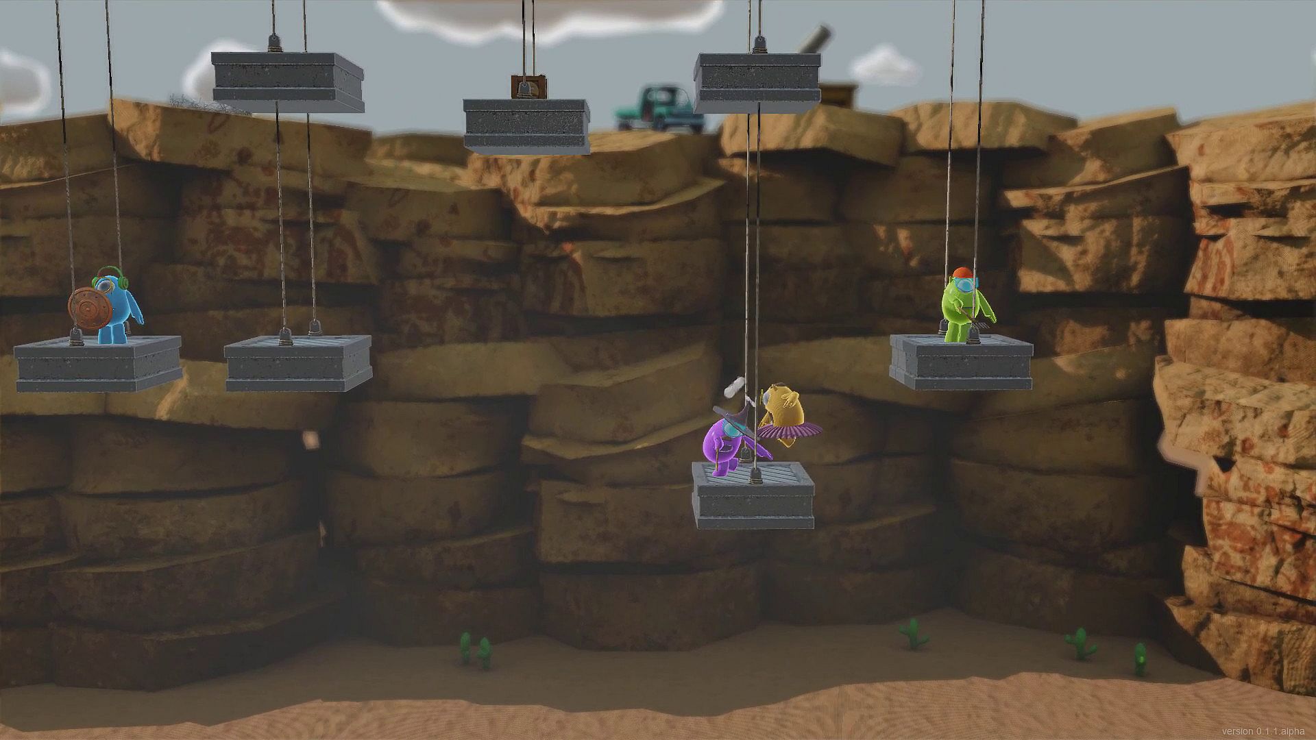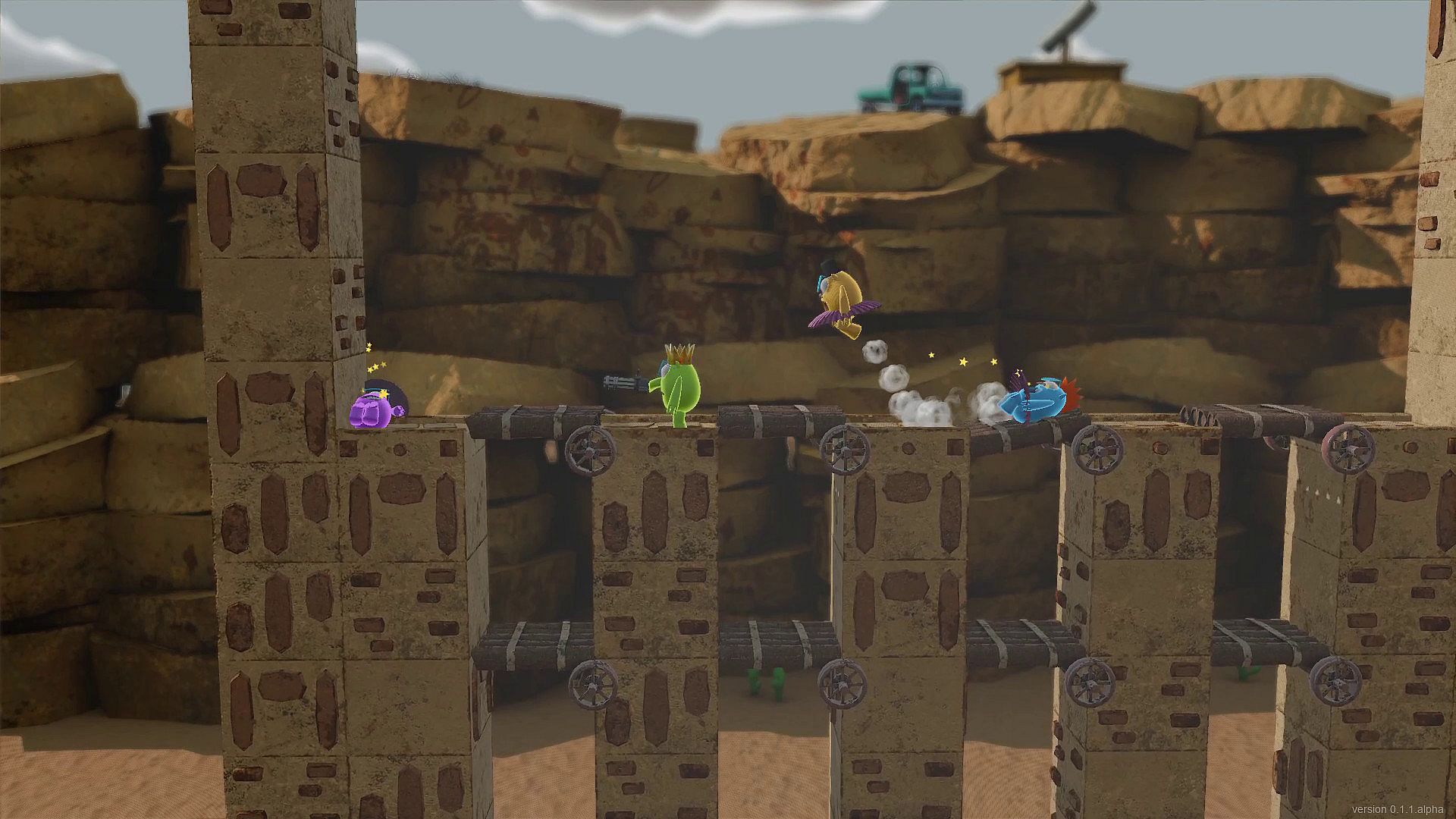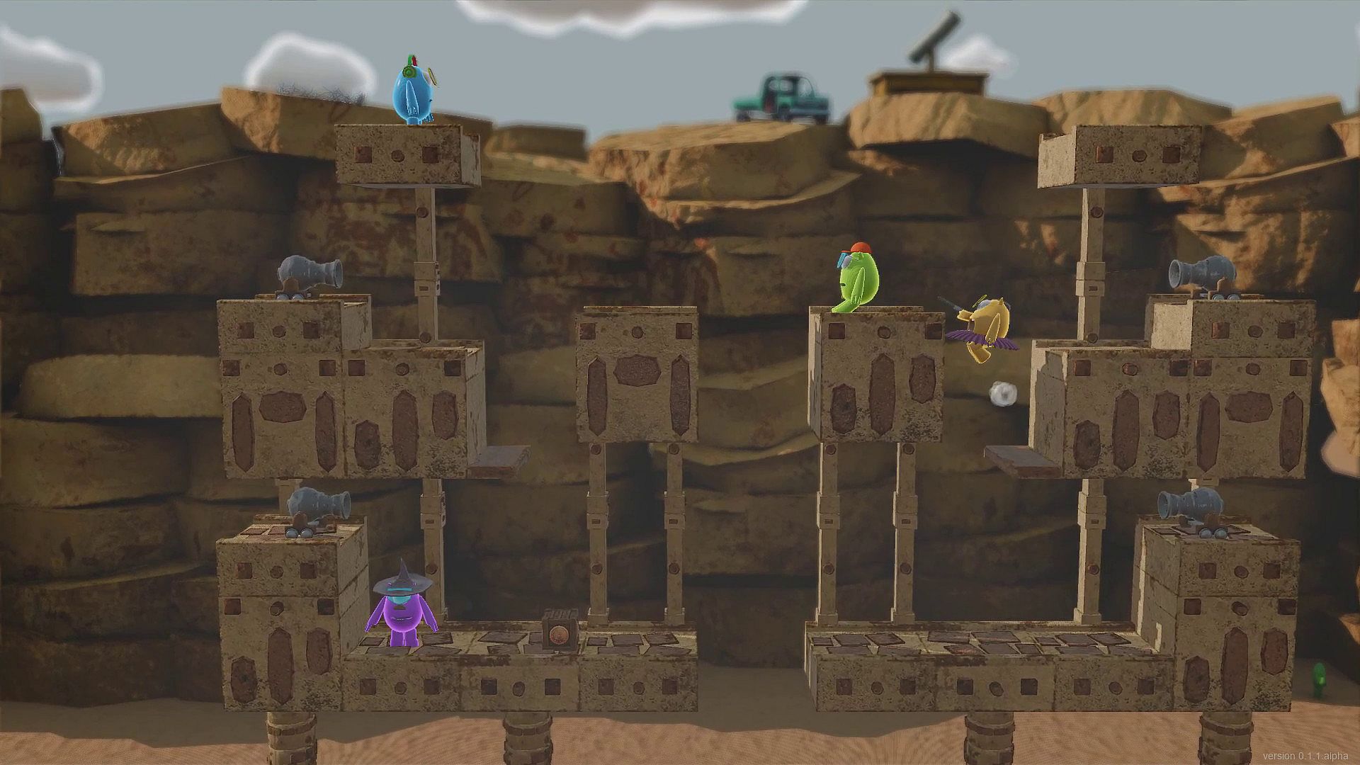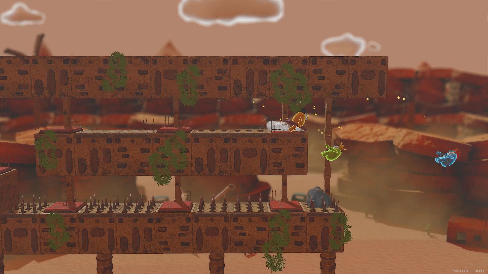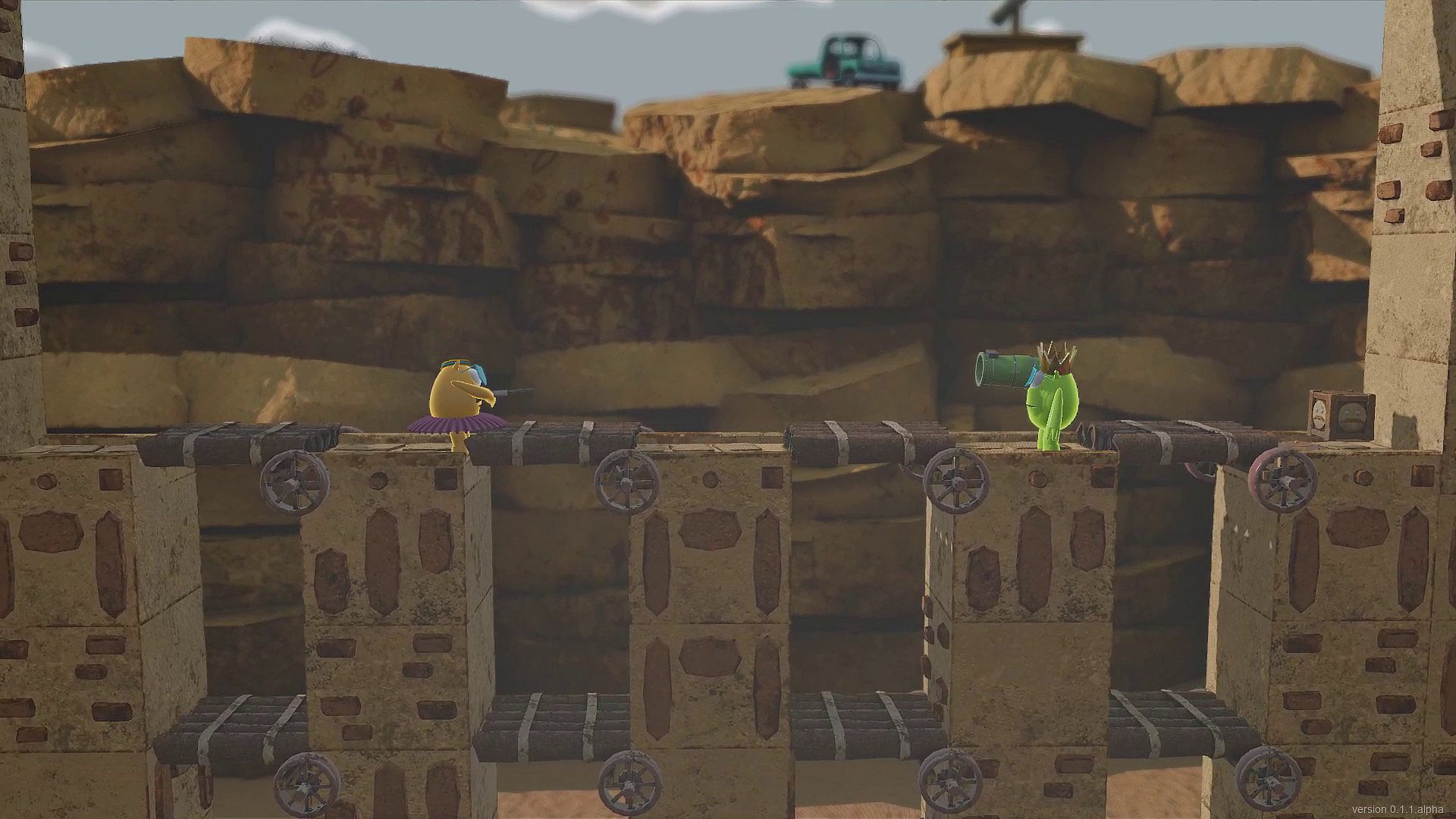 Knuckers Test Fight is a couch fighting game with funny characters, cute costumes, various weapons, tricky levels, and mini-games.