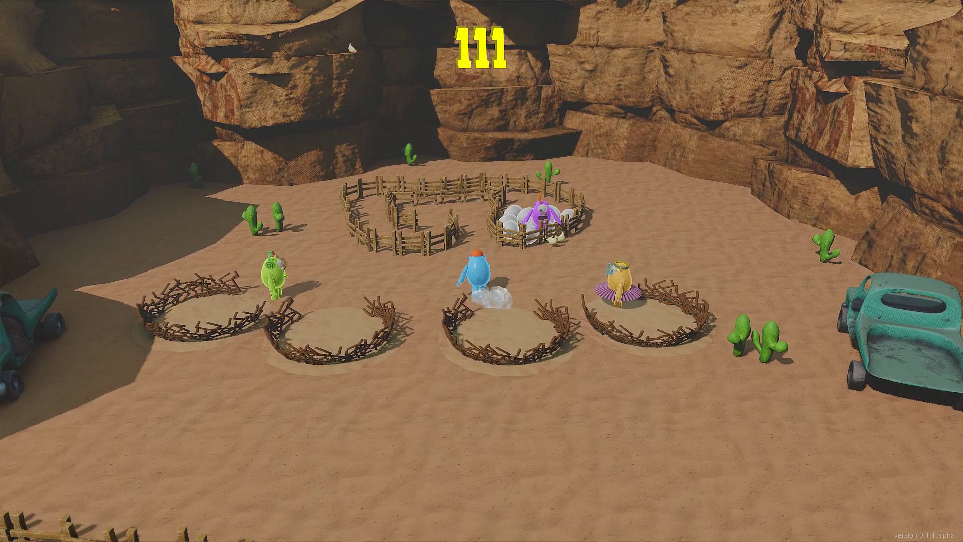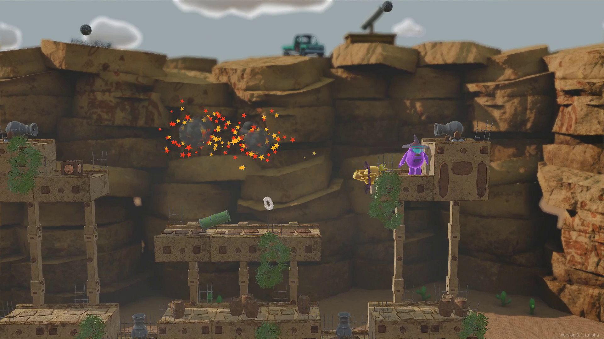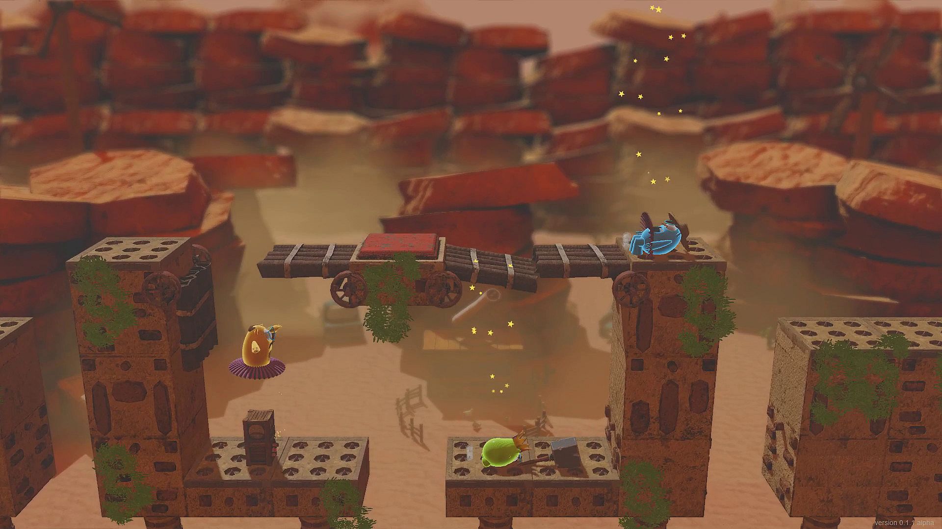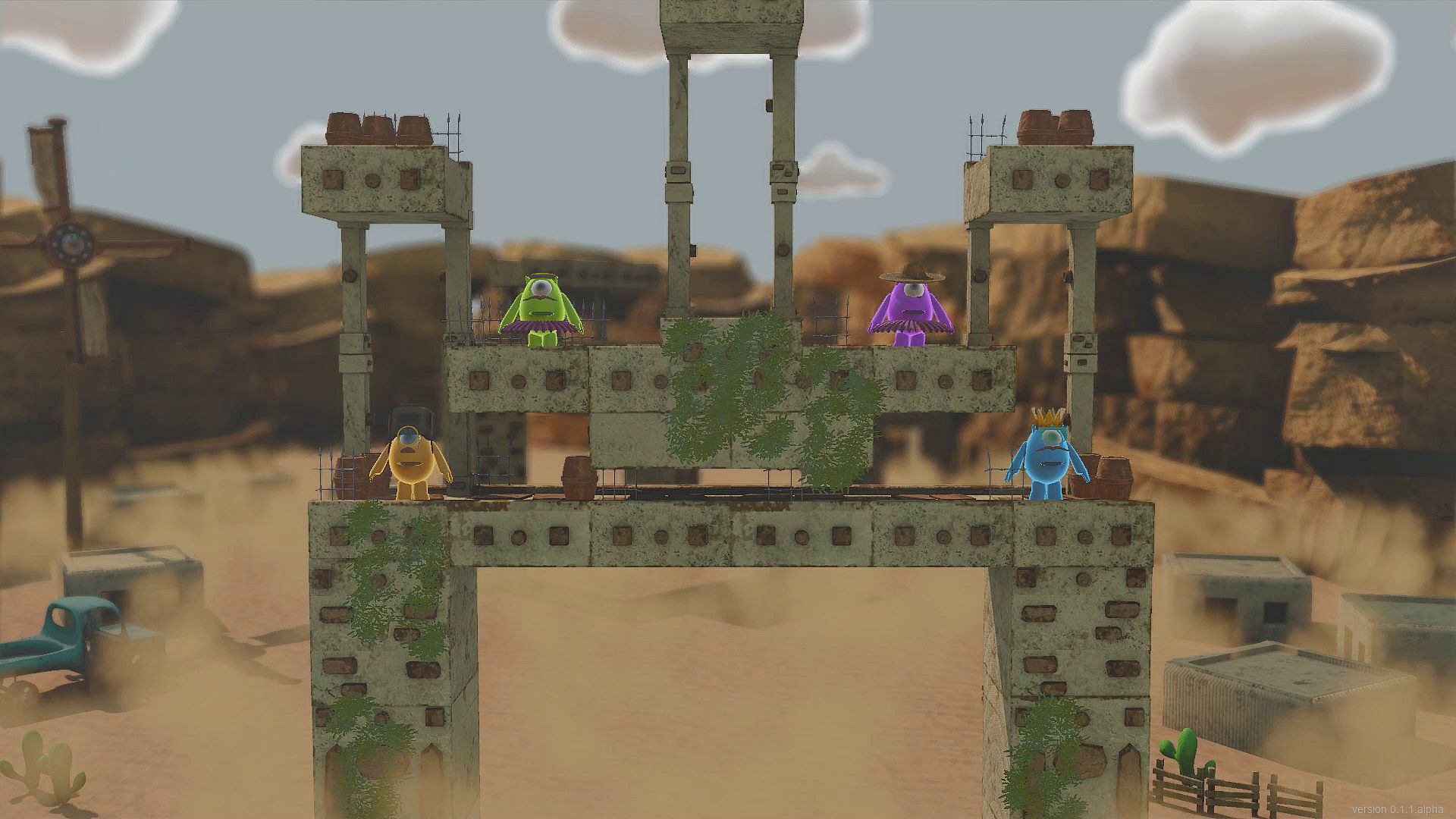 Knuckers Test Fight is a couch fighting game with funny characters, cute costumes, various weapons, tricky levels, and mini-games.