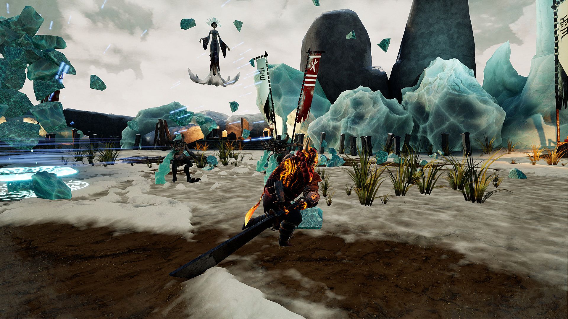 Kogarashi tells the story of Abura Akago, a fire demon that lived ignoring the ice demon Yuki Onna and her evil deeds, until one day she went too far and stole the soul of his mother. At that moment Abura Akago armed with his flaming sword decided to free the region from the evil ice spirit and her demon army.