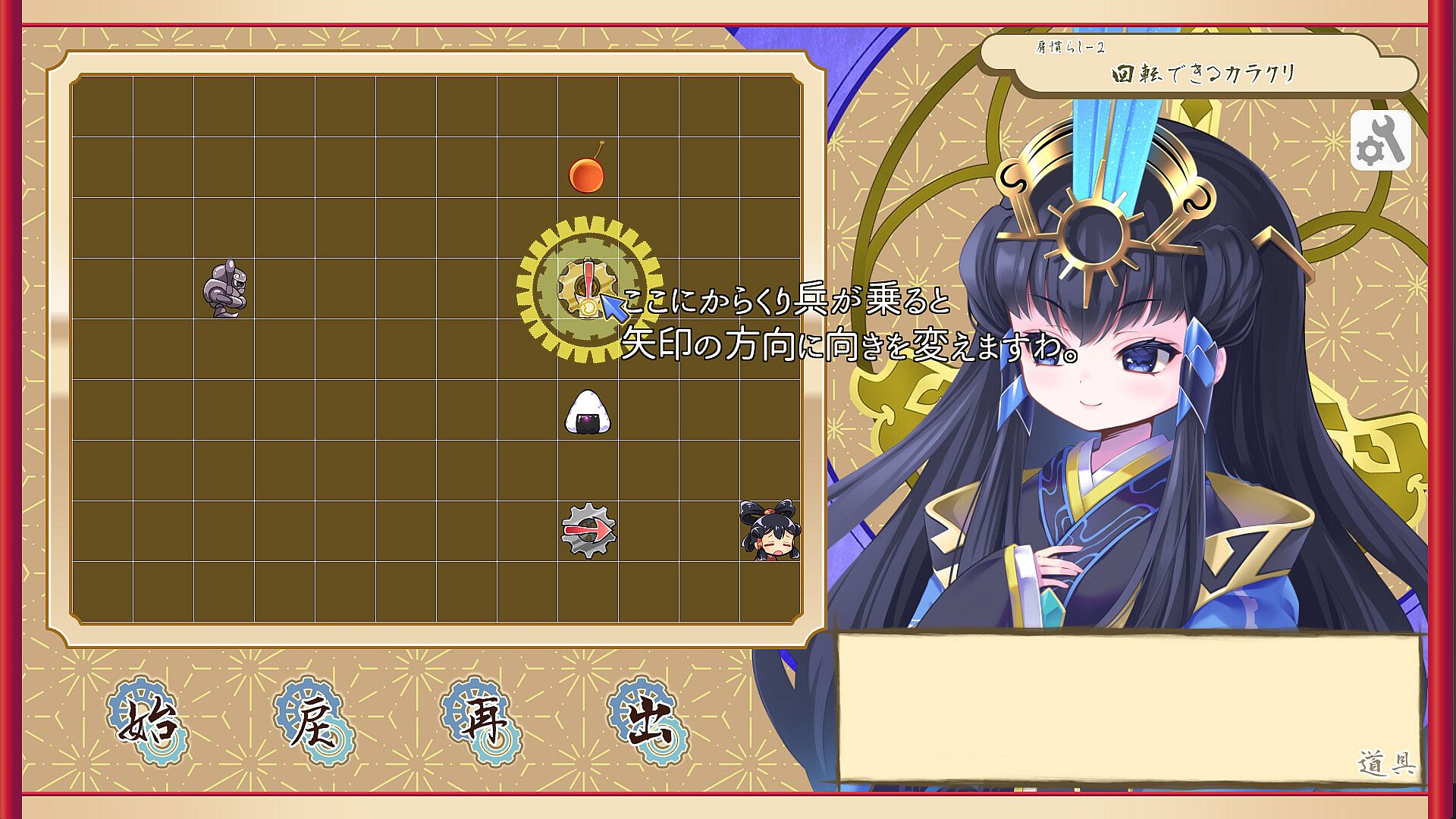 "When you click the 'Start 「始」' button, the clockwork soldiers on the board will begin to move straight forward."The clockwork soldiers can change direction or jump using the mechanisms on the board!