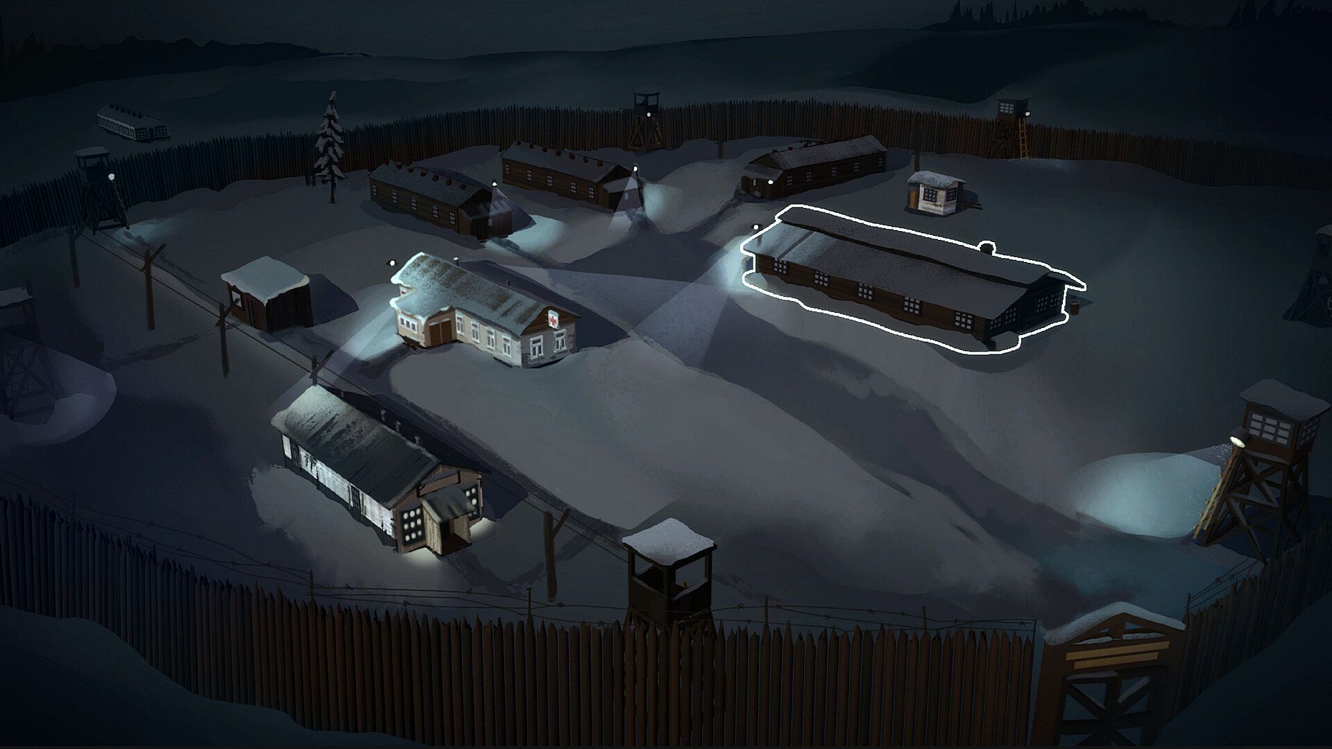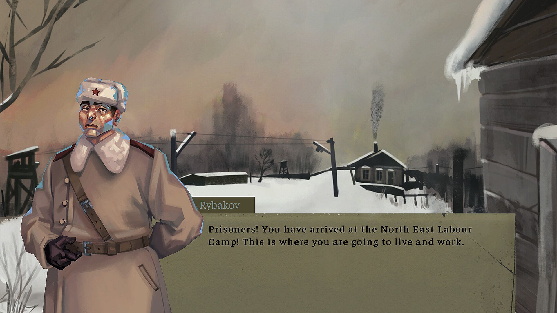 Explore the zone of the camp. From the three prisoner barracks, to the kiosk, to the post office, to the medical center, to the cafeteria, each building has unique characters and quests, as well as tools that may aid in your survival. Manage your time, however, as labor is mandatory in the GULAG camp, and prisoners work full days except on Saturdays and Sundays. Only in the few hours of transition time can you gather resources, collect items, and accept additional tasks. The activities you engage in will determine whether you make it to the next moment of respite.