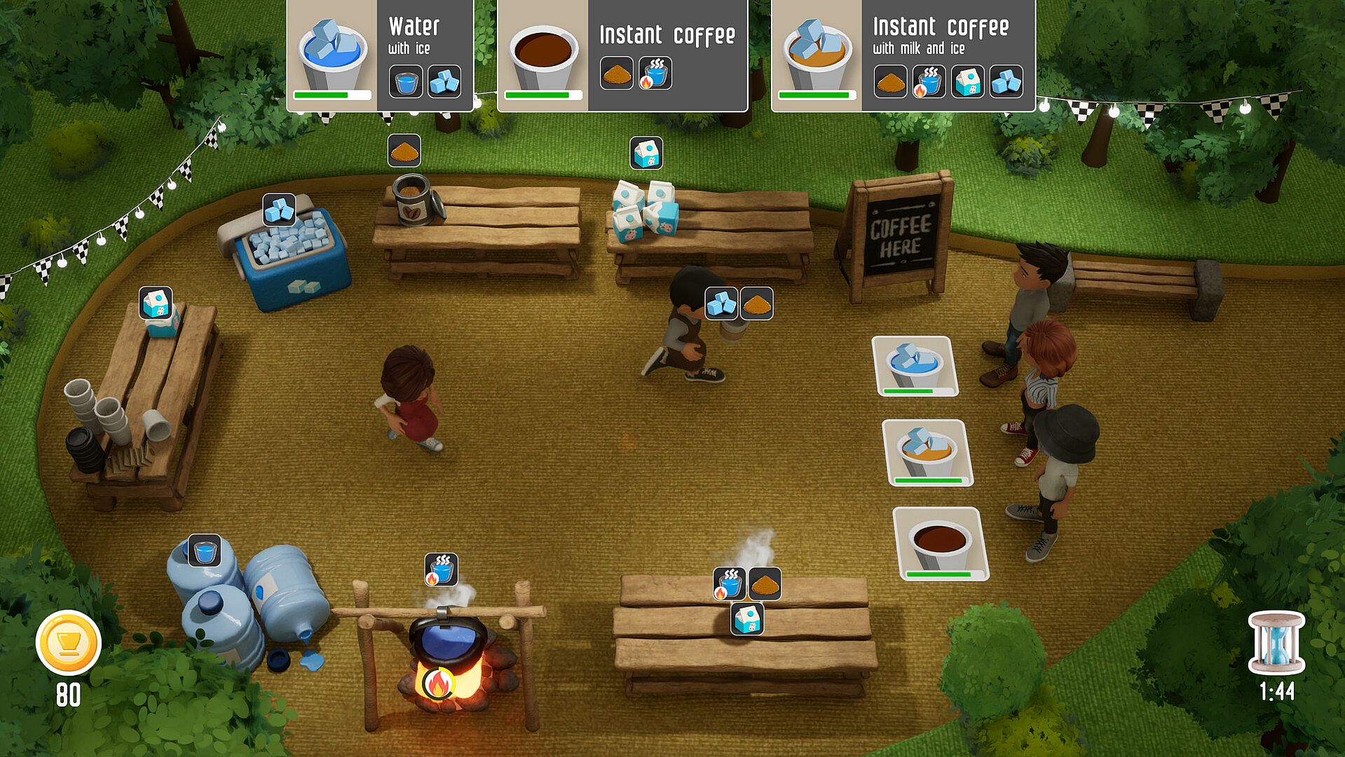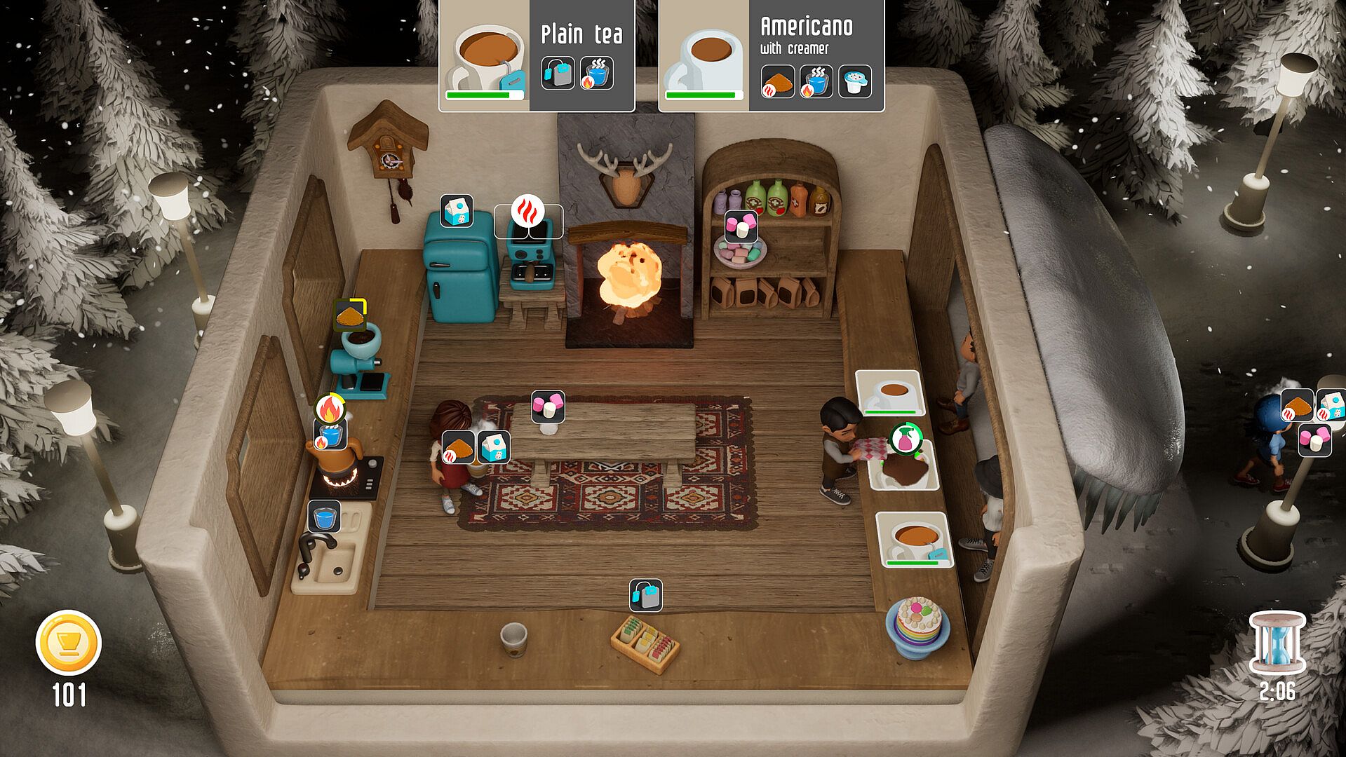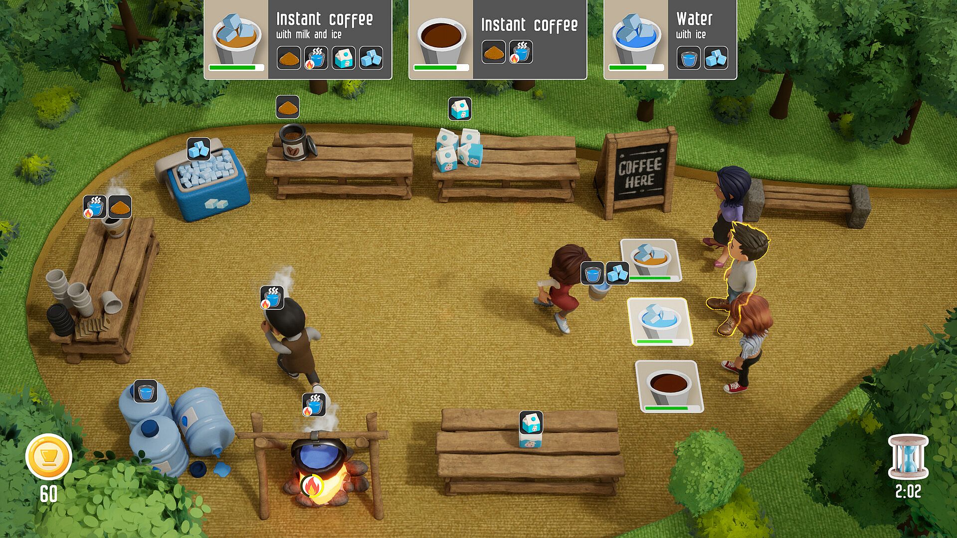 Welcome to KOPI, a family-friendly cooking game that can be enjoyed solo or with friends in co-op mode. In KOPI, you'll craft increasingly elaborate drinks and dishes for ever-demanding customers. Whether you're brewing, cooking, frying, cleaning, or serving, remember: it’s not over until the customer leaves happy.