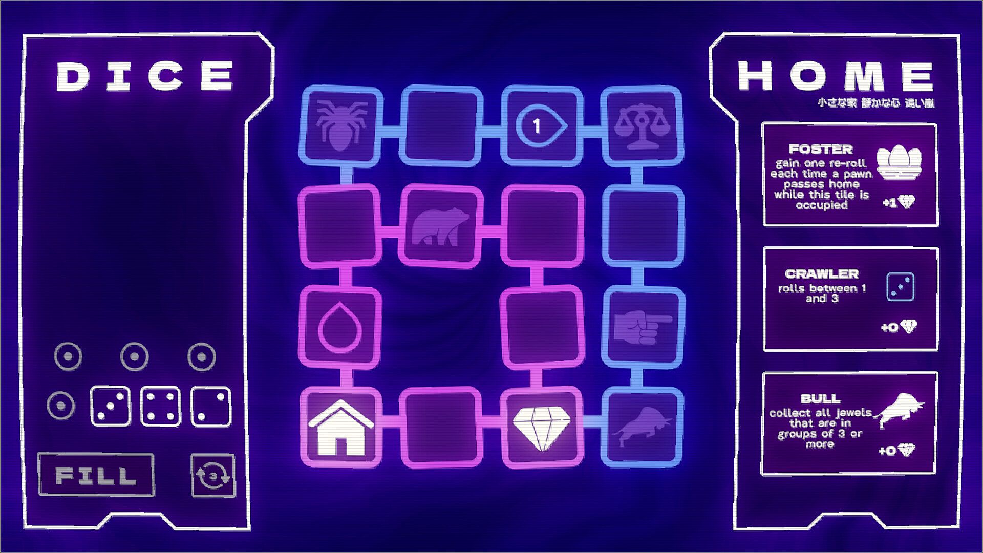 KOROMEKE is a game of simple rules and rich tactics which forces you to think on your feet. Collect enough jewels to survive your laps around the looping board, choosing from over 50 different upgrades to make every run unique. With limitless mind-bending synergies to discover, can you find the combos that tip the odds back in your favor?