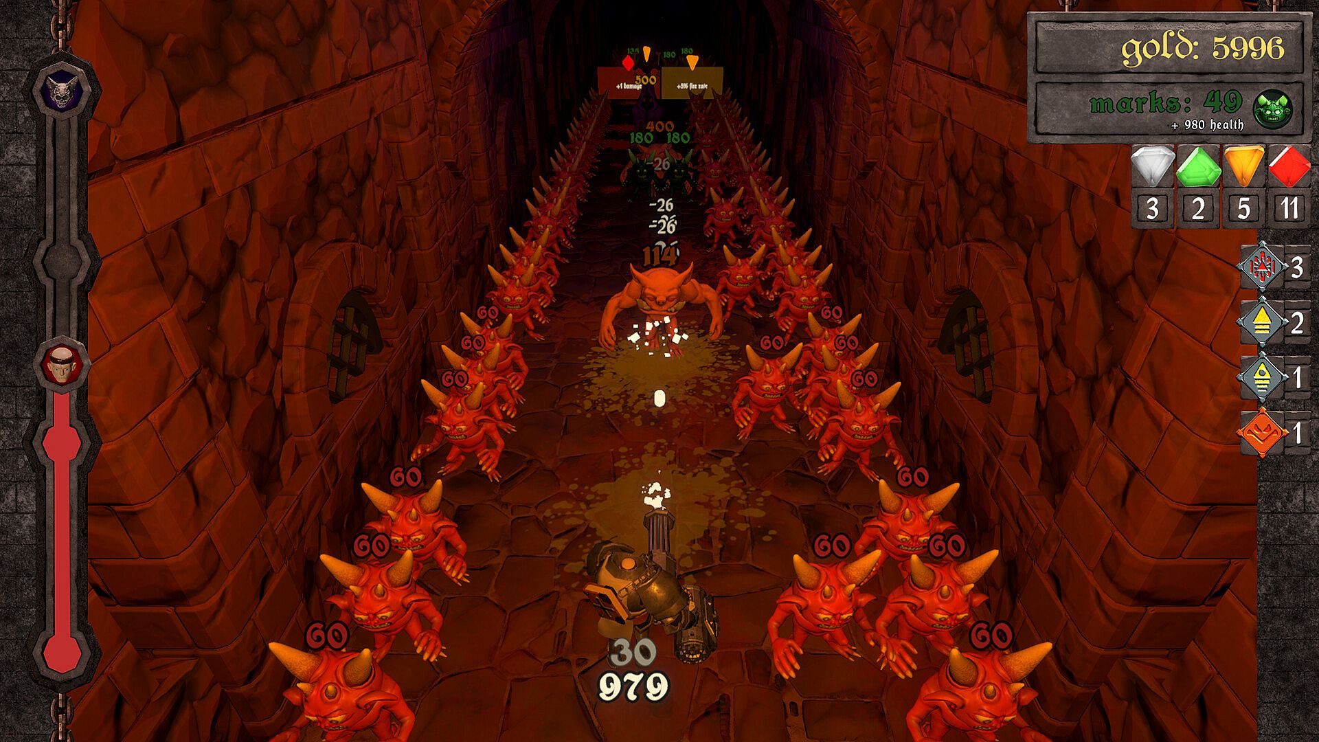 The game is a mix between mobile gate runners and survivor-likes, featuring retro 3D graphics and a heavy metal soundtrack.