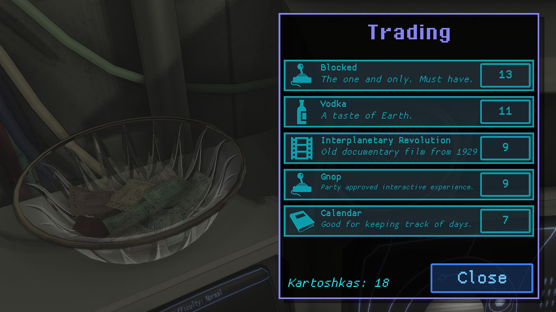 - Adjust the game's difficulty level with the help of vodka