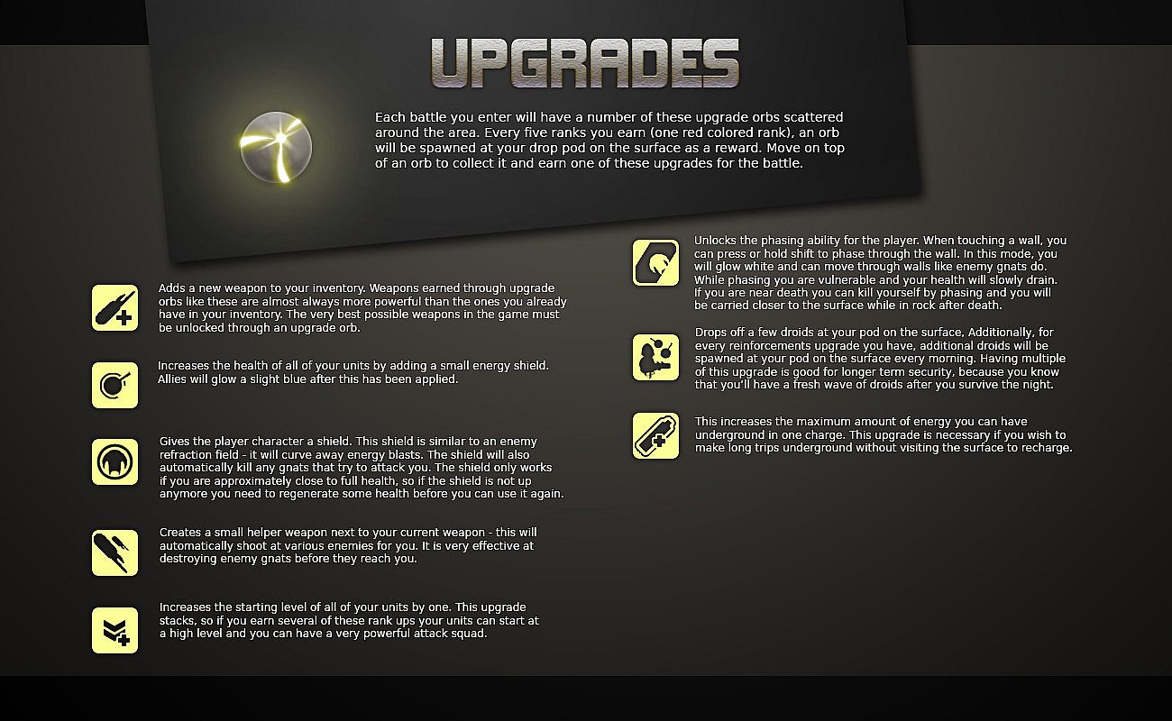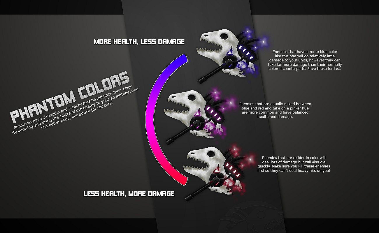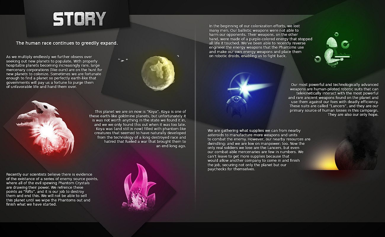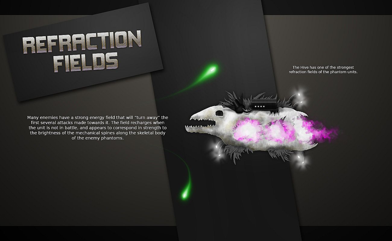 Don’t get too proud though – if you beat it too easily the game will know and will be sure to adjust the difficulty for next time. Game difficulty in Koya Rift is complex – it’s not a simple modification to the amount of health you have, and it isn't a simple easy-normal-hard scale. Difficulty is modeled as a precise measurement that expands near-infinitely in either direction in this game. Difficulty adjustments affect almost everything in game – from the reaction speed of the Phantoms, to the speed at which they grow and evolve, to the cost of your allies, the experience they need to level up, the accuracy, size, fire rate, and density of your energy weapons, the rate of health recovery, the effects of special weapons, the size of the levels you play on, the health and damage of your enemies, the speed and fragility of your allies, the cash value of killing an opponent, the swiftness and force of enemy raids, and even more. There are so many values that change, and when they do change, they change with such subtlety that you will not be able to pick out exactly why this next game seems like more of a challenge for you than last.