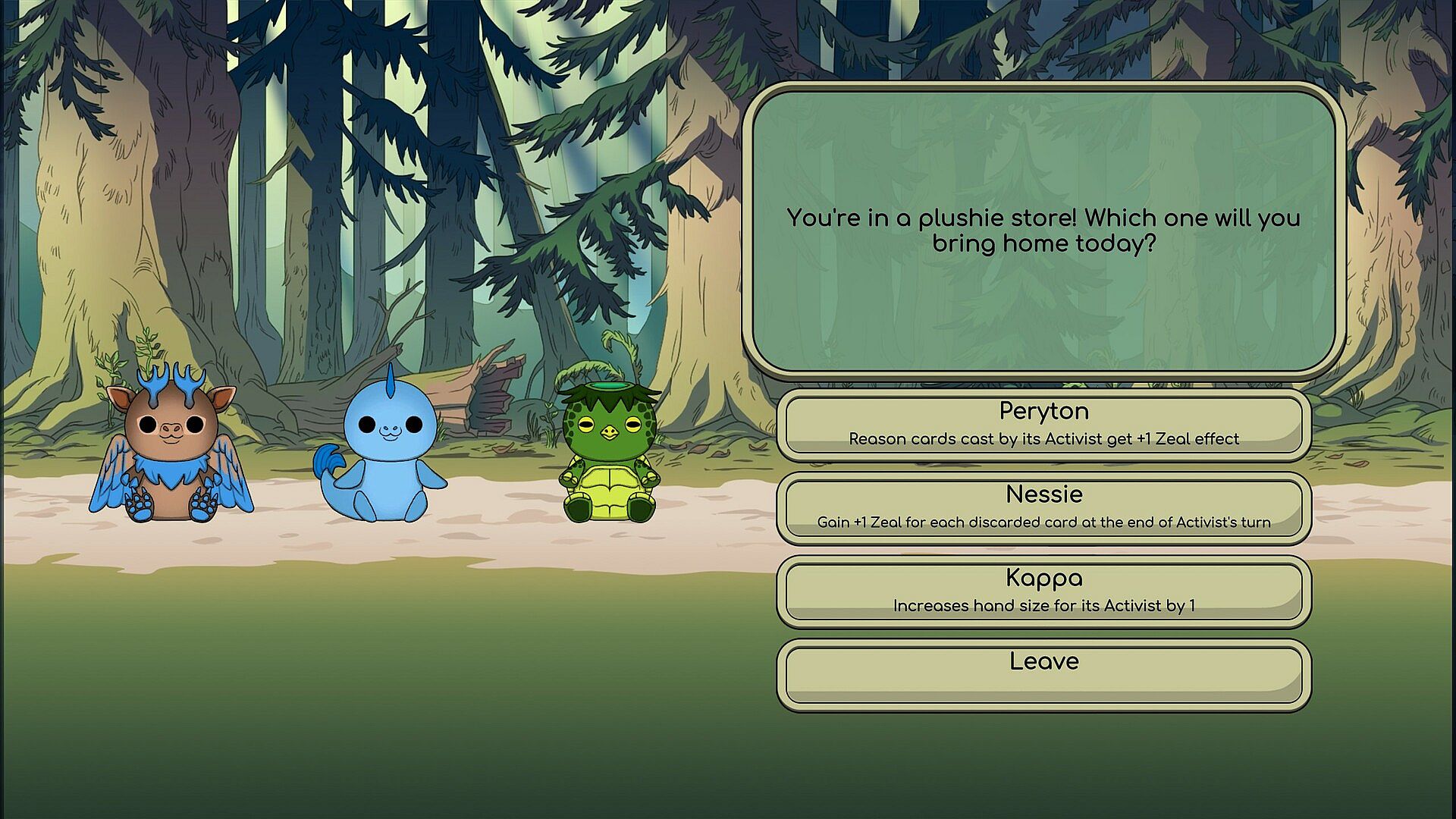 Supercharge the seven playable characters by unlocking and upgrading cards! The mysterious former activist’s shop may just have the card you need to succeed. For a permanent boost to your team member’s debate skills, plushies give you the edge that will tip the scales in your favour.