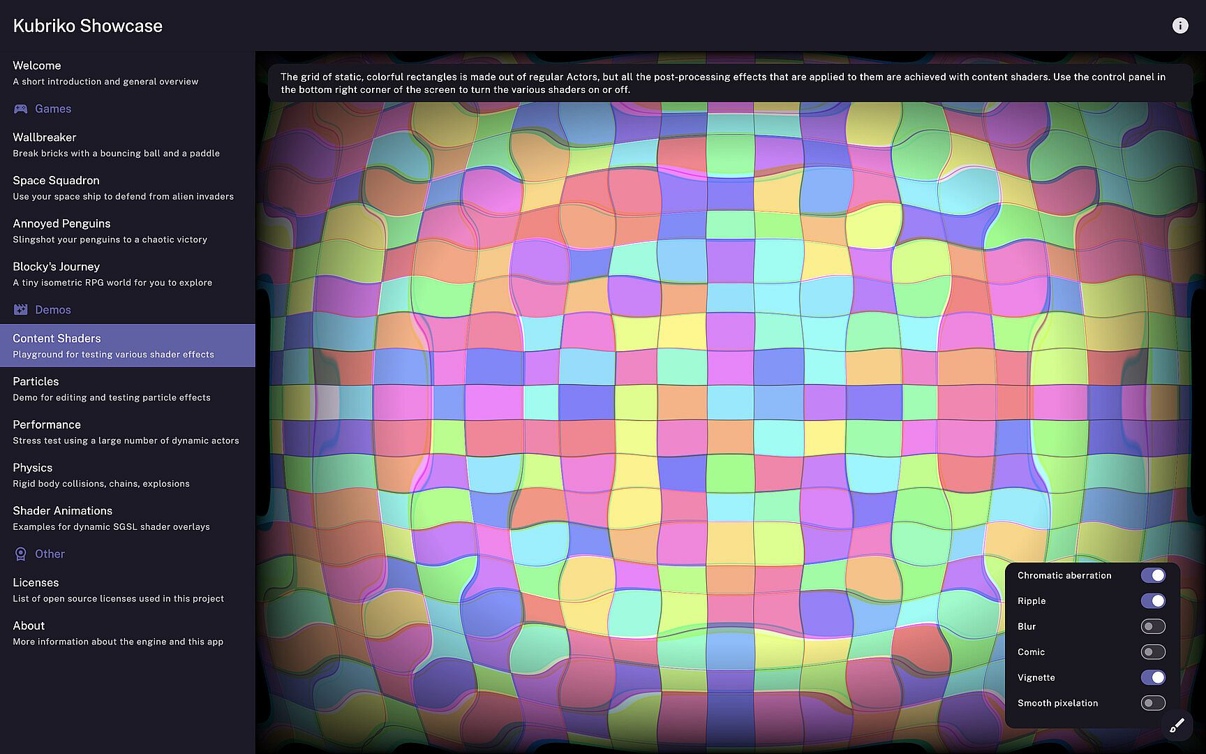 Kubriko Showcase currently contains the following examples: