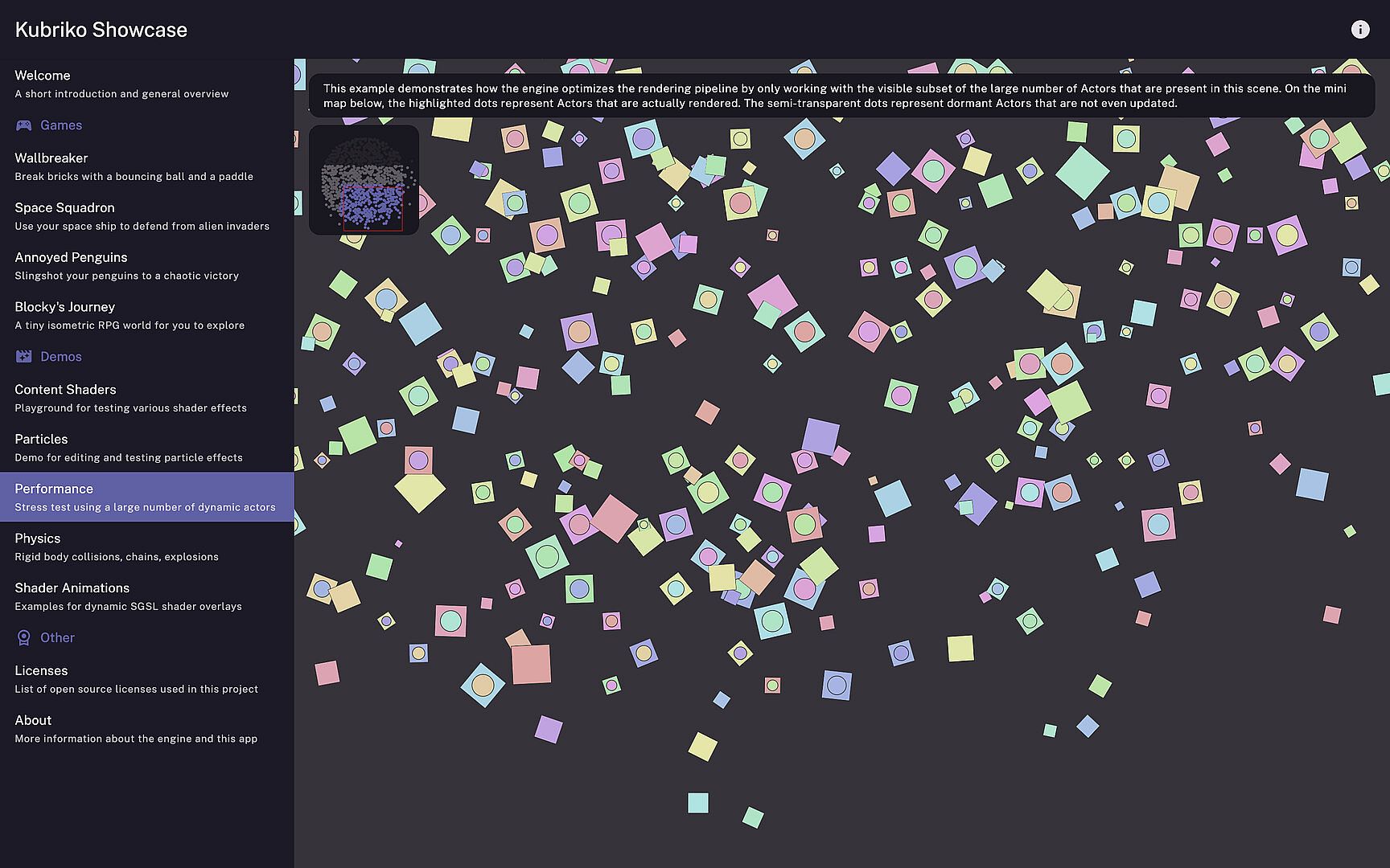The engine together with this Showcase app is currently under active development. Expect new features and improvements on a regular basis. To learn more and start creating your own games using Kubriko, check out the linked repository and join our community!