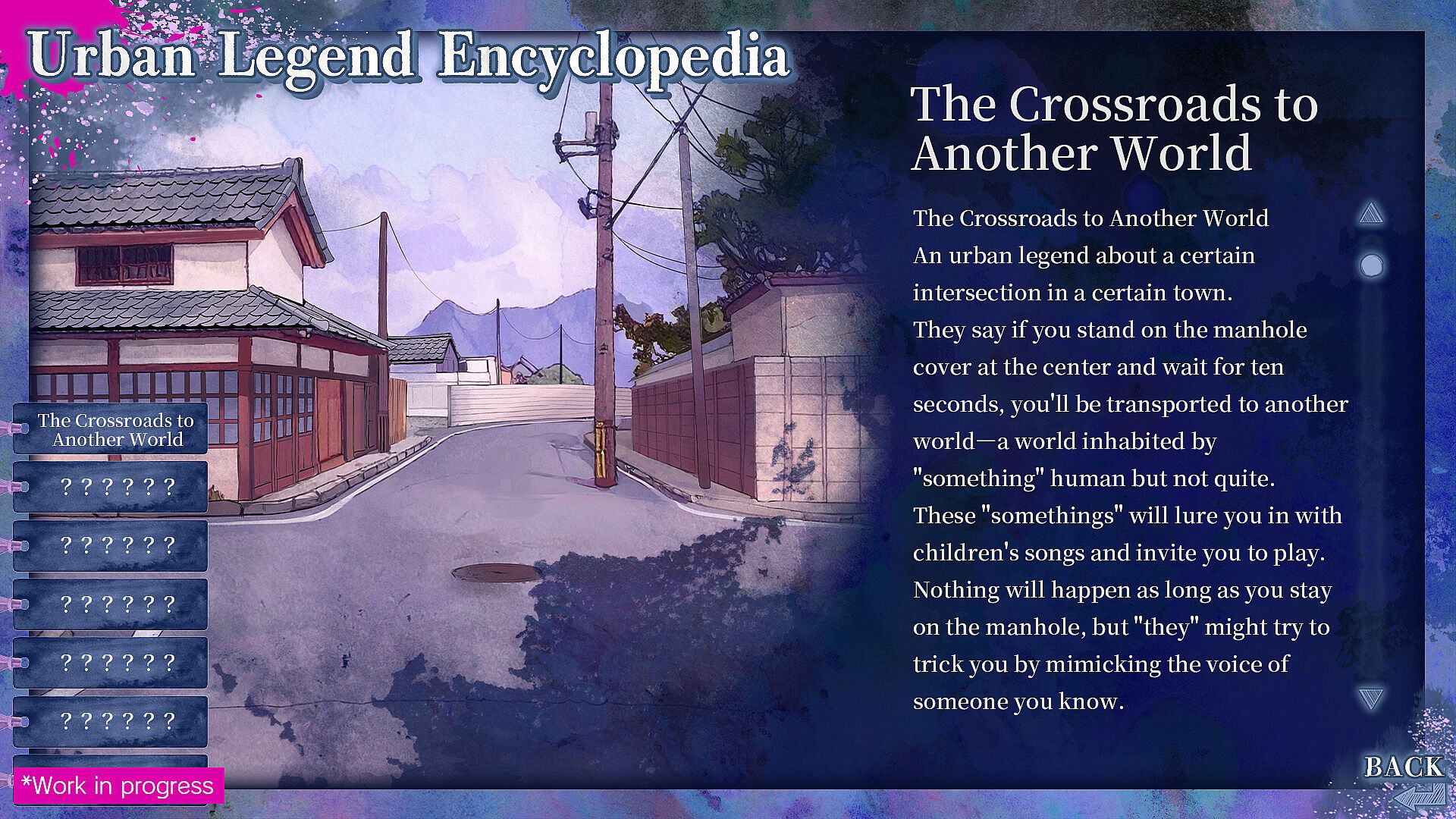 Interact with all sorts of ghosts, collect archive entries to fill out the Urban Legend Encyclopedia, and unravel the truth behind the story.