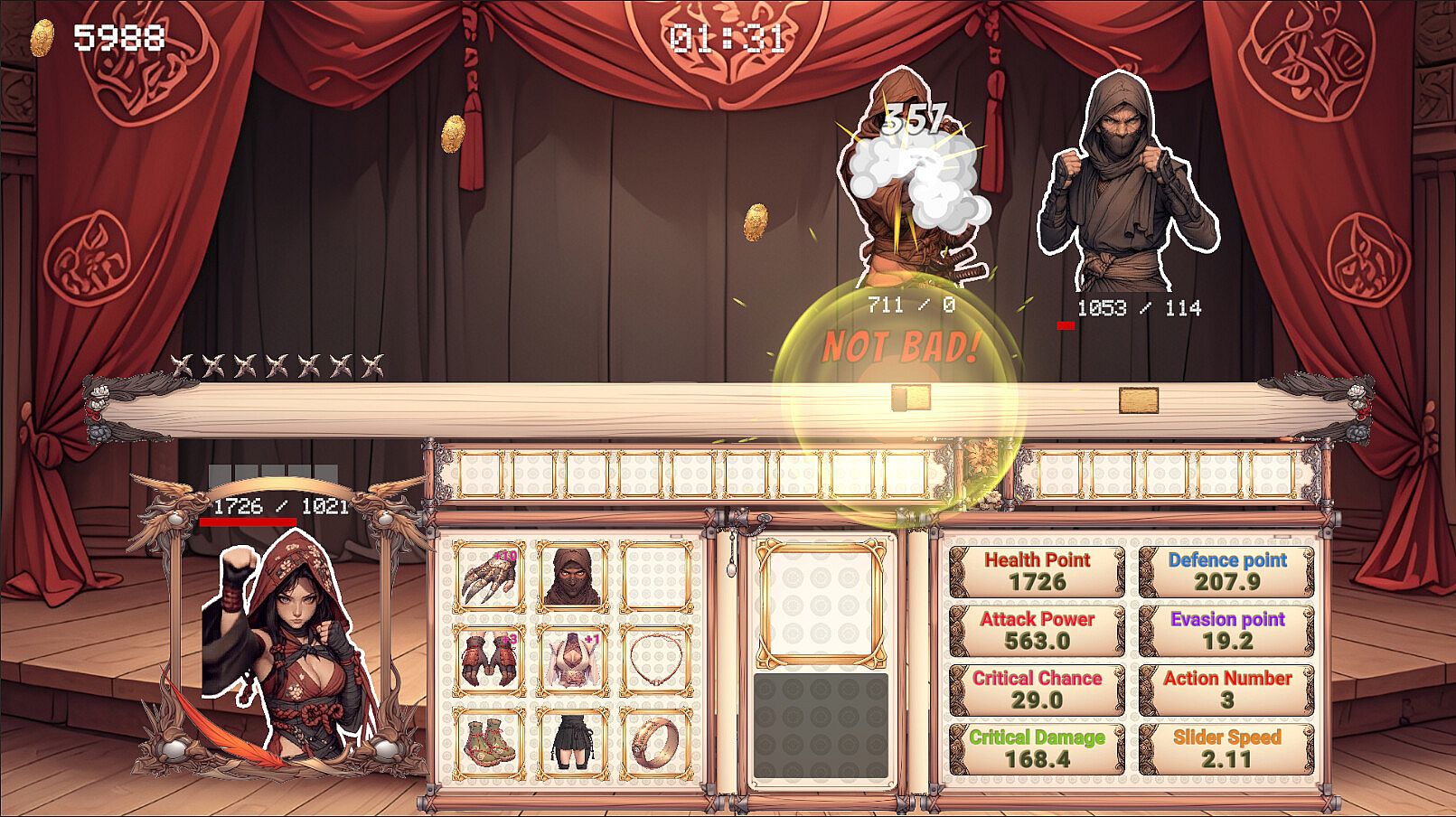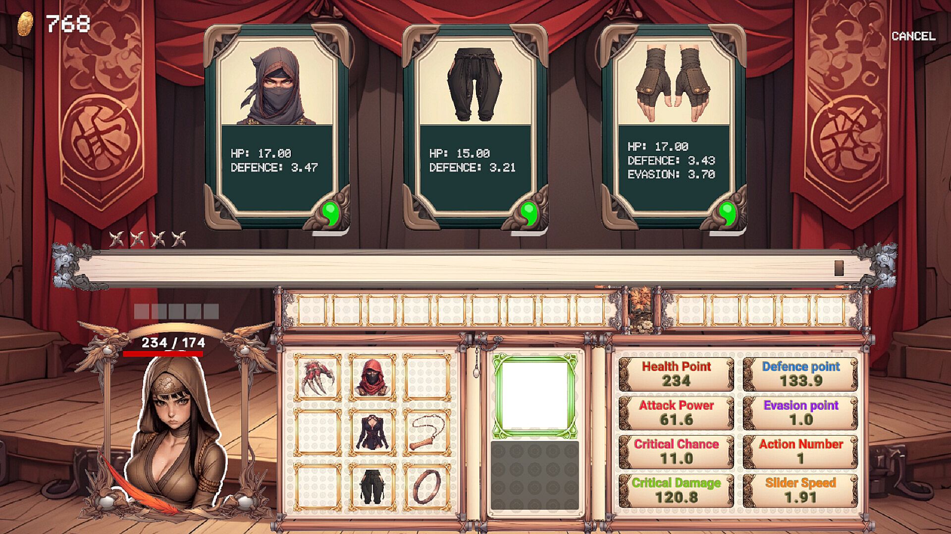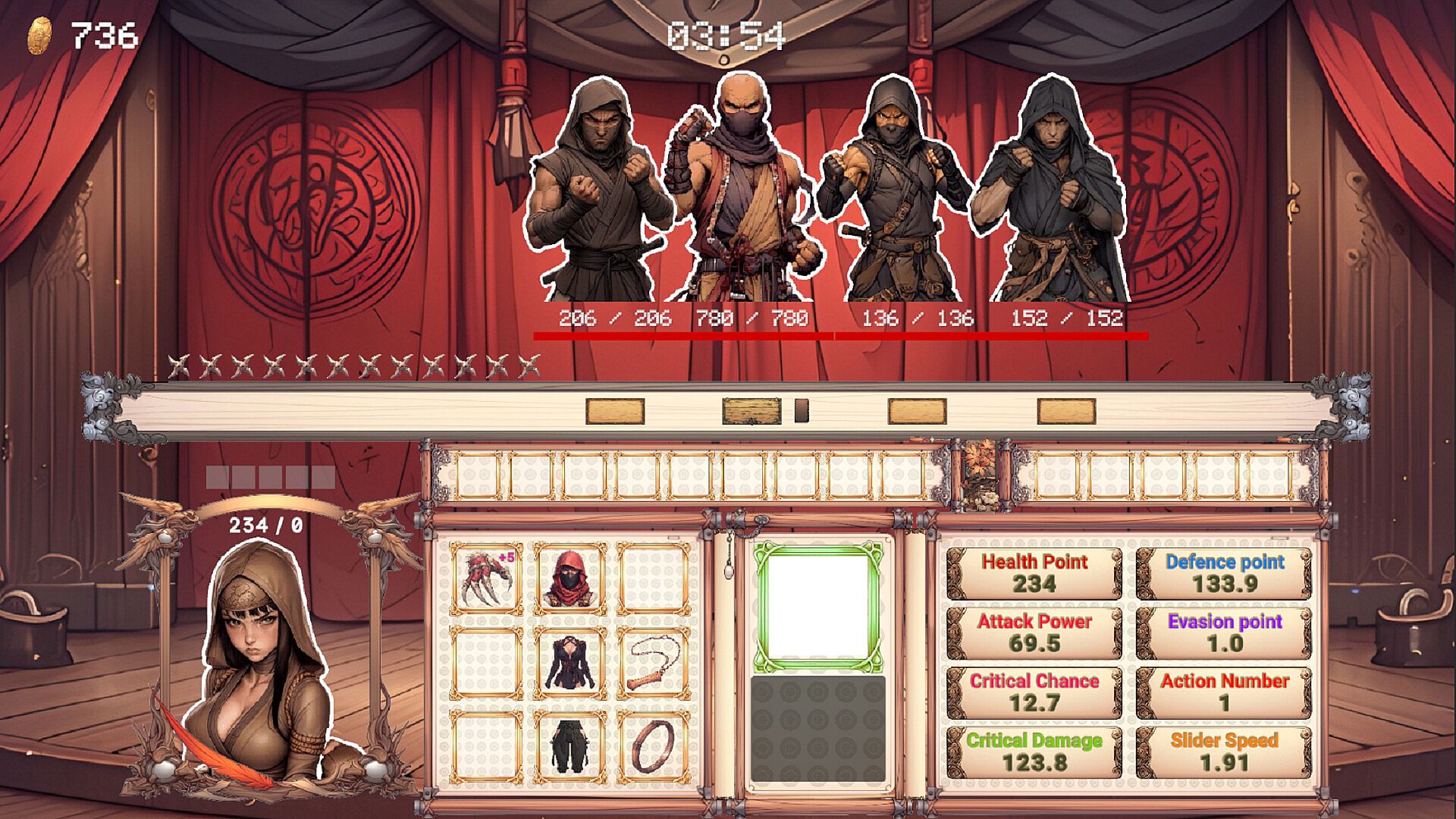 In the shop, you can buy equipment items at random or purchase various skill scrolls to gain an advantage in battle.