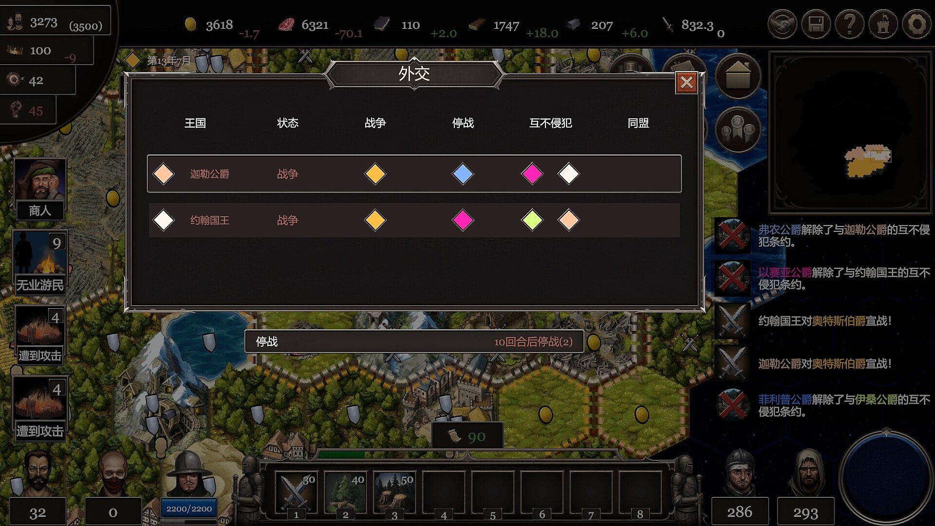 War brings great resource consumption; also, avoid losing too many soldiers, as this will disrupt the internal stability of the kingdom, leading to crises and even collapse.