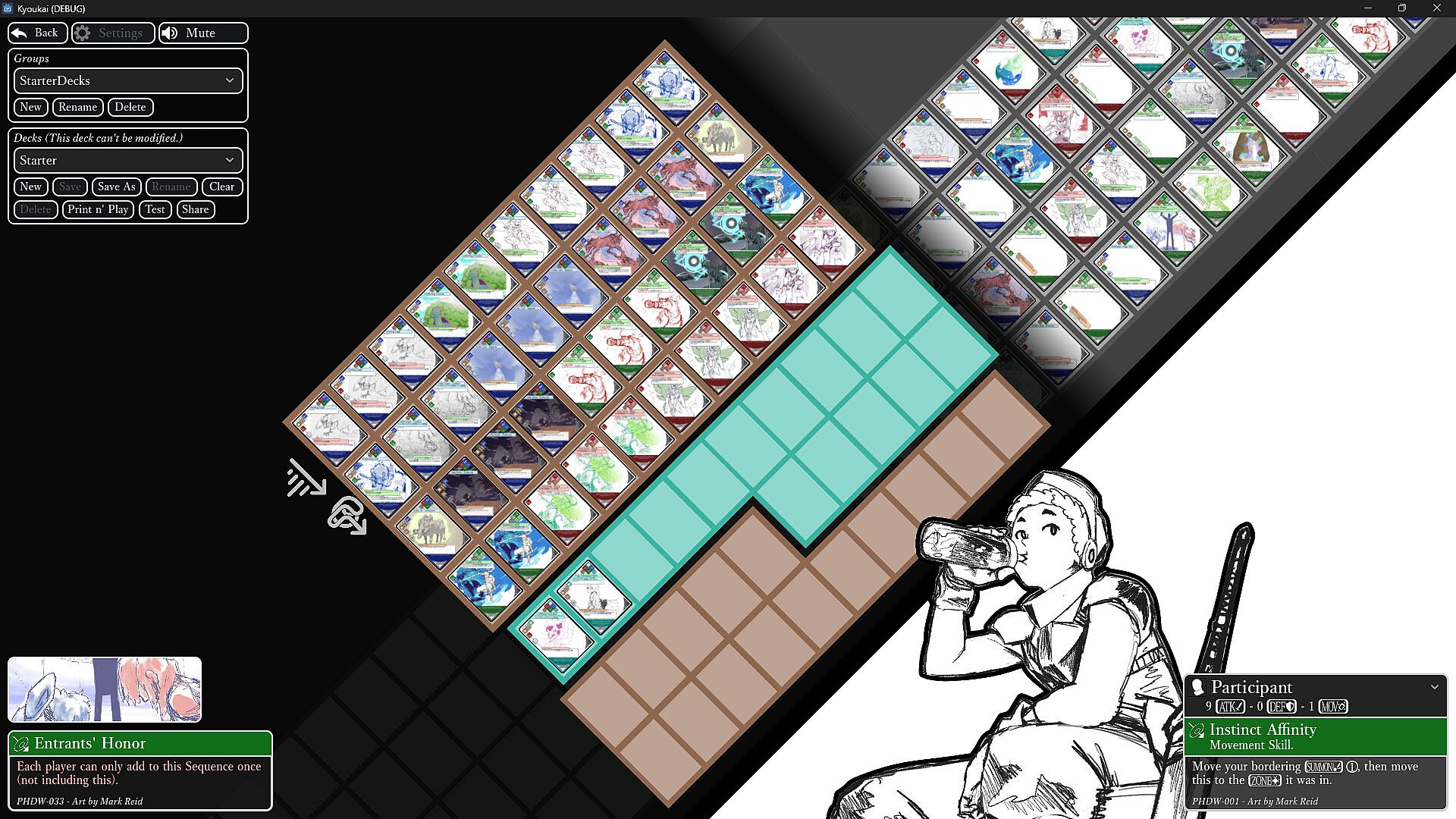 Welcome to Kyoukai ECG Online, the online client for the IsoRPG-inspired TCG! Kyoukai is designed to be a printed Card Game, has no mana resource, and no AI of any kind.