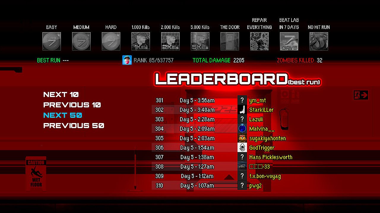 - Compete in speed runs against other players and rank in a global Steam leaderboard shown in game.
