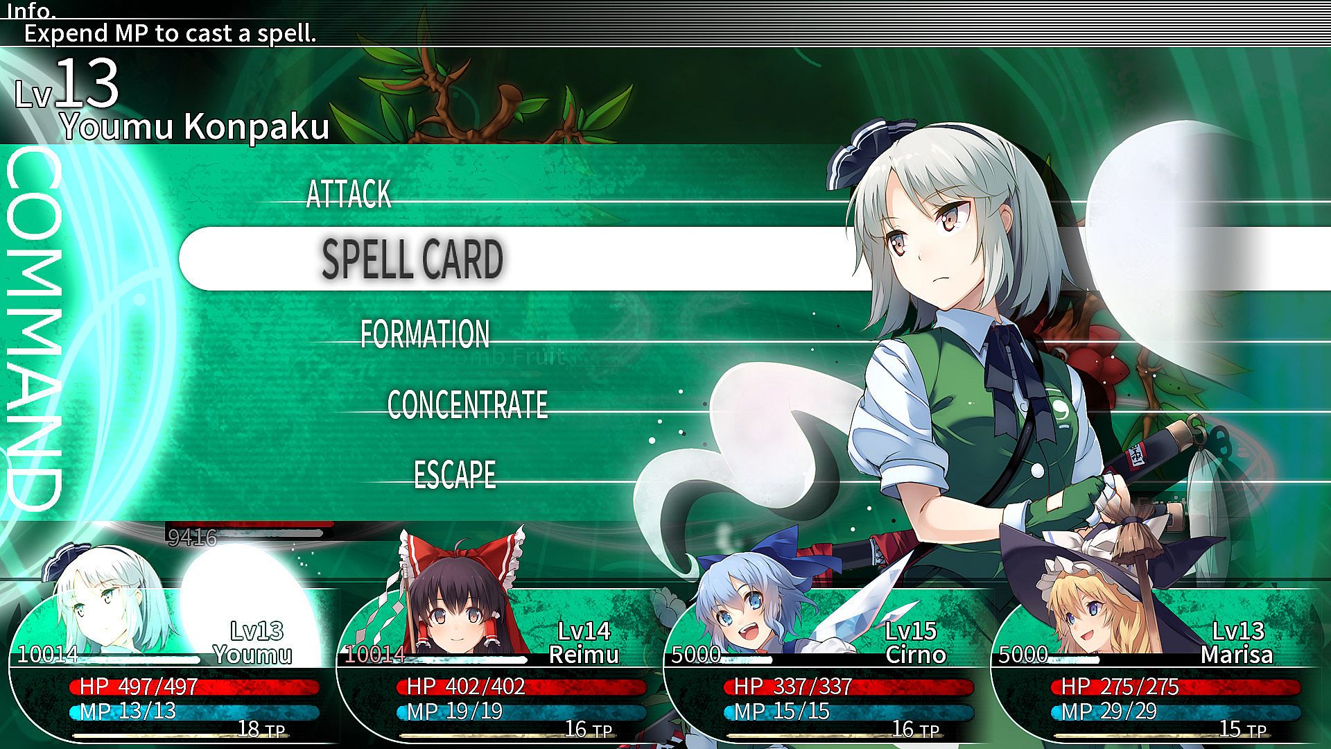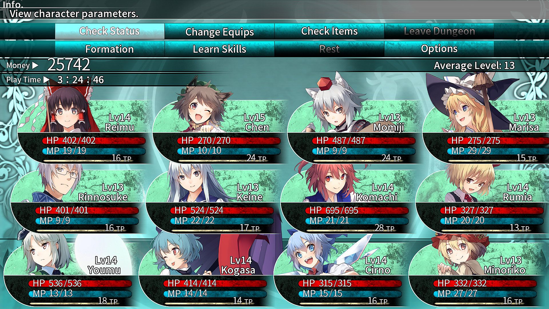 Choosing from many Touhou Project characters, form and develop a large team of 12, and challenge the powerful foes that stand in your way.