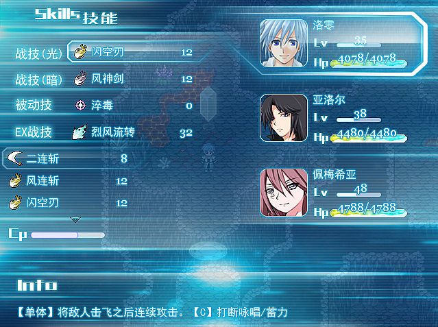 • 通过攻击敌人获取技能点数(Cp),在战斗中,任意一名角色都可使用Cp强化技能或进行追击;