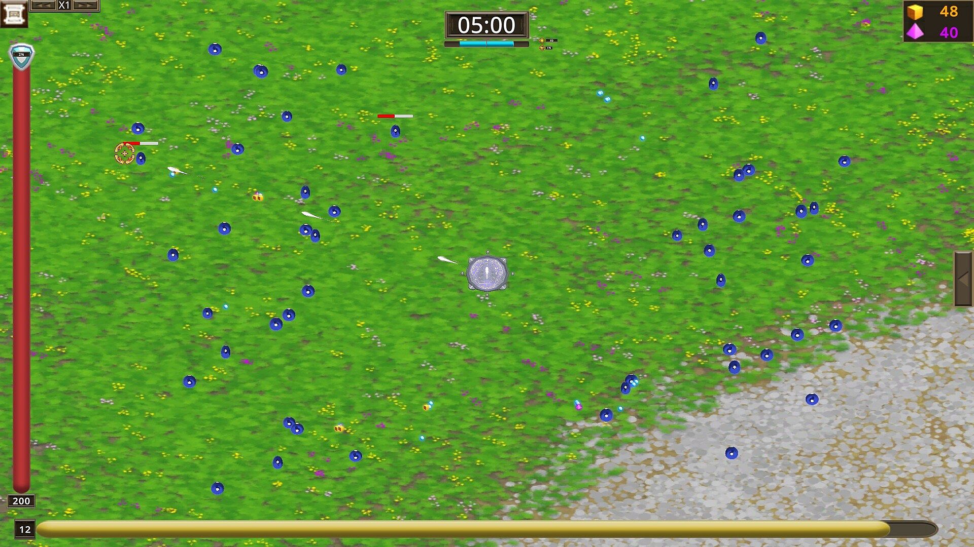 After each wave you will visit the shop, where you can buy, sell, upgrade and copy your crests.