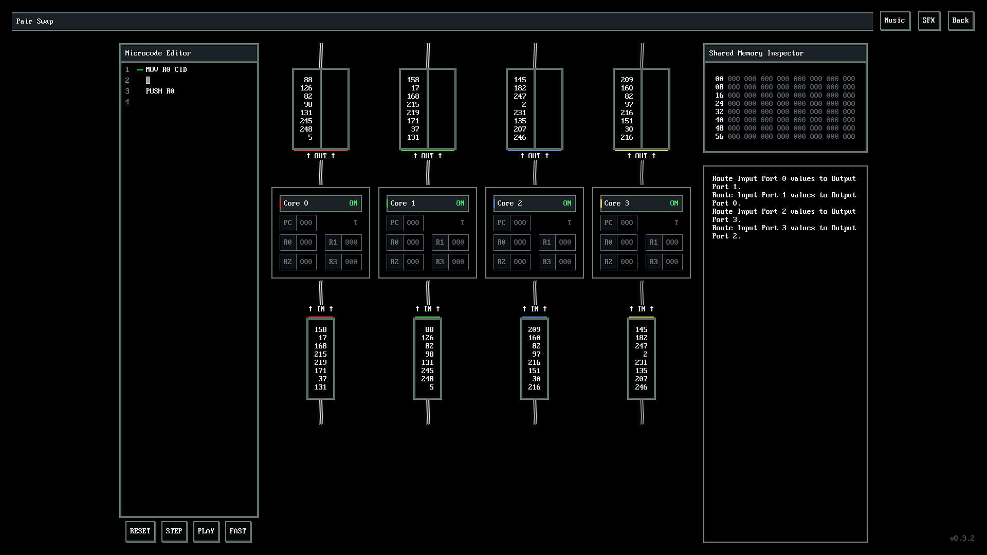 Program a quad-core microcontroller in a custom assembly language.