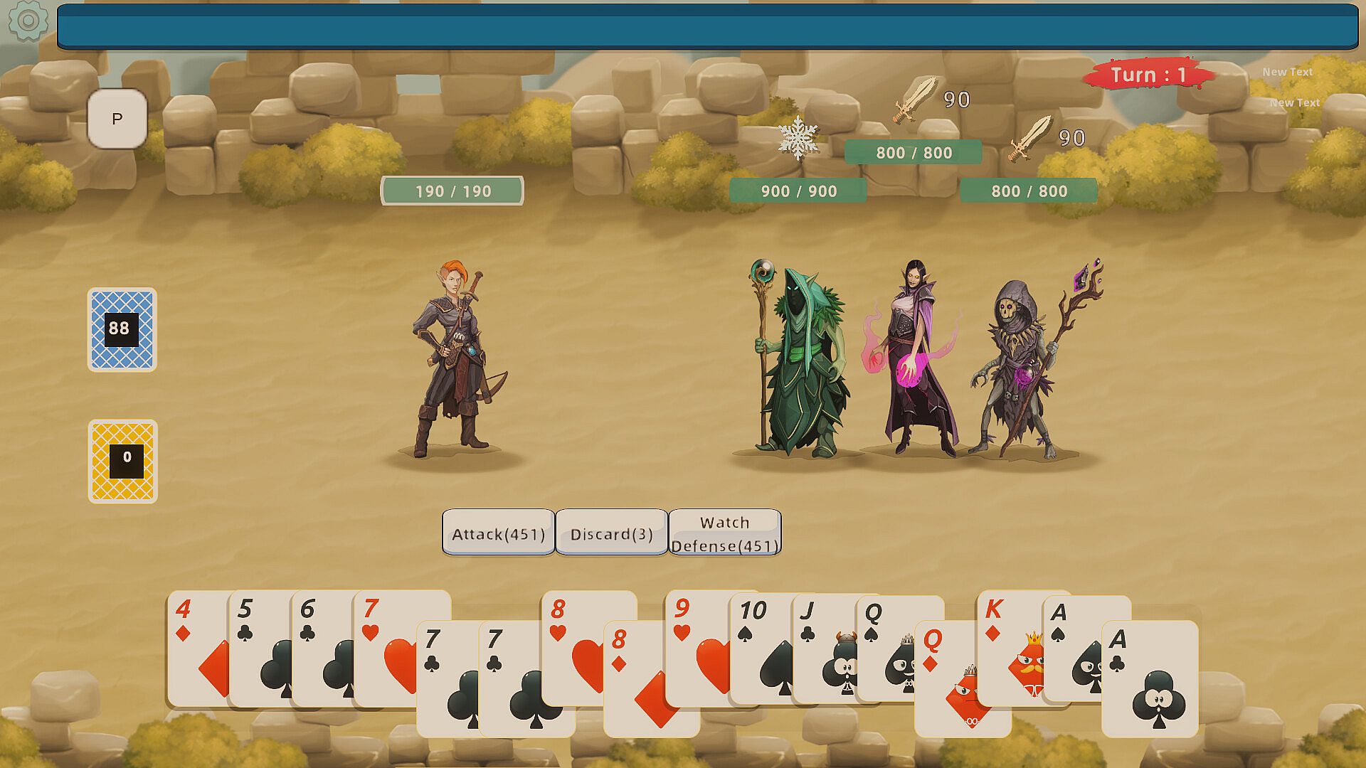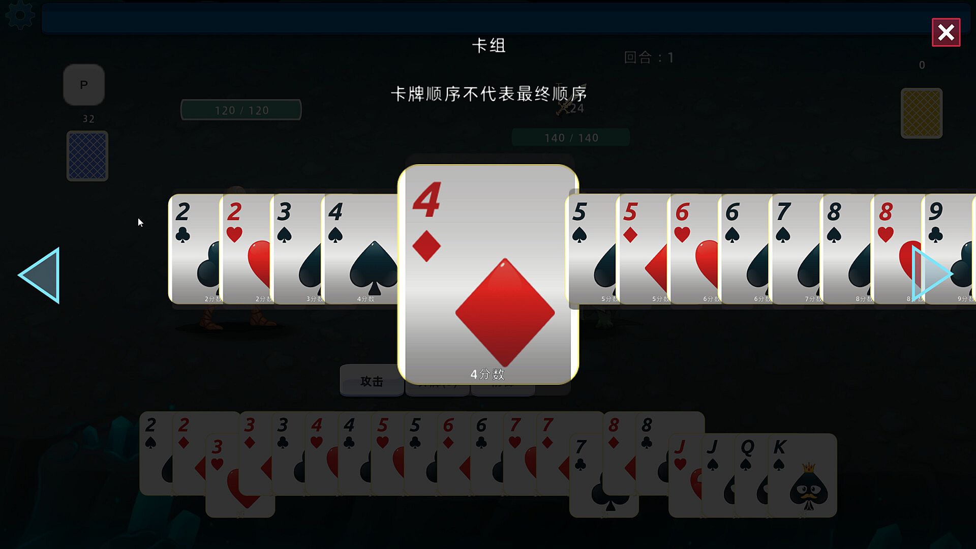 Use different skills from different professions in combination with playing cards to defeat enemies with various skills