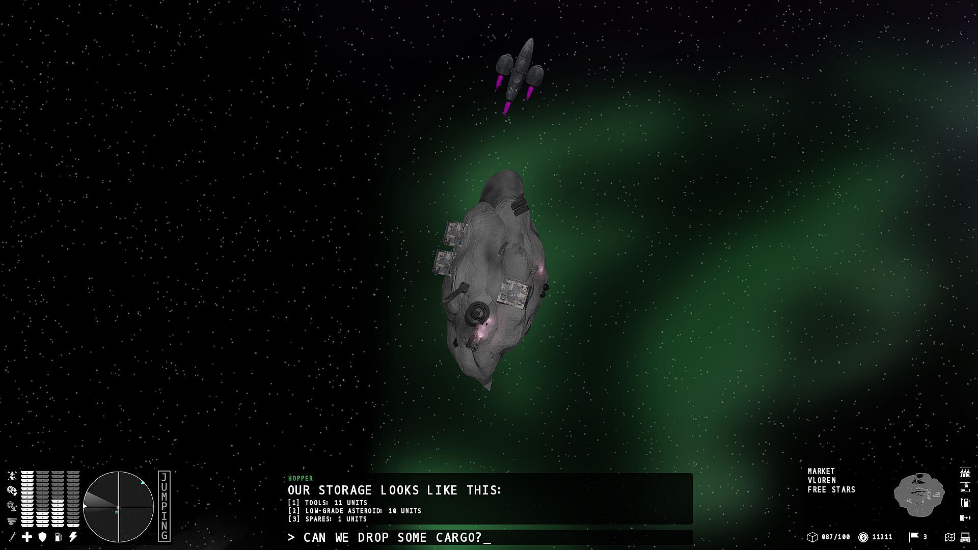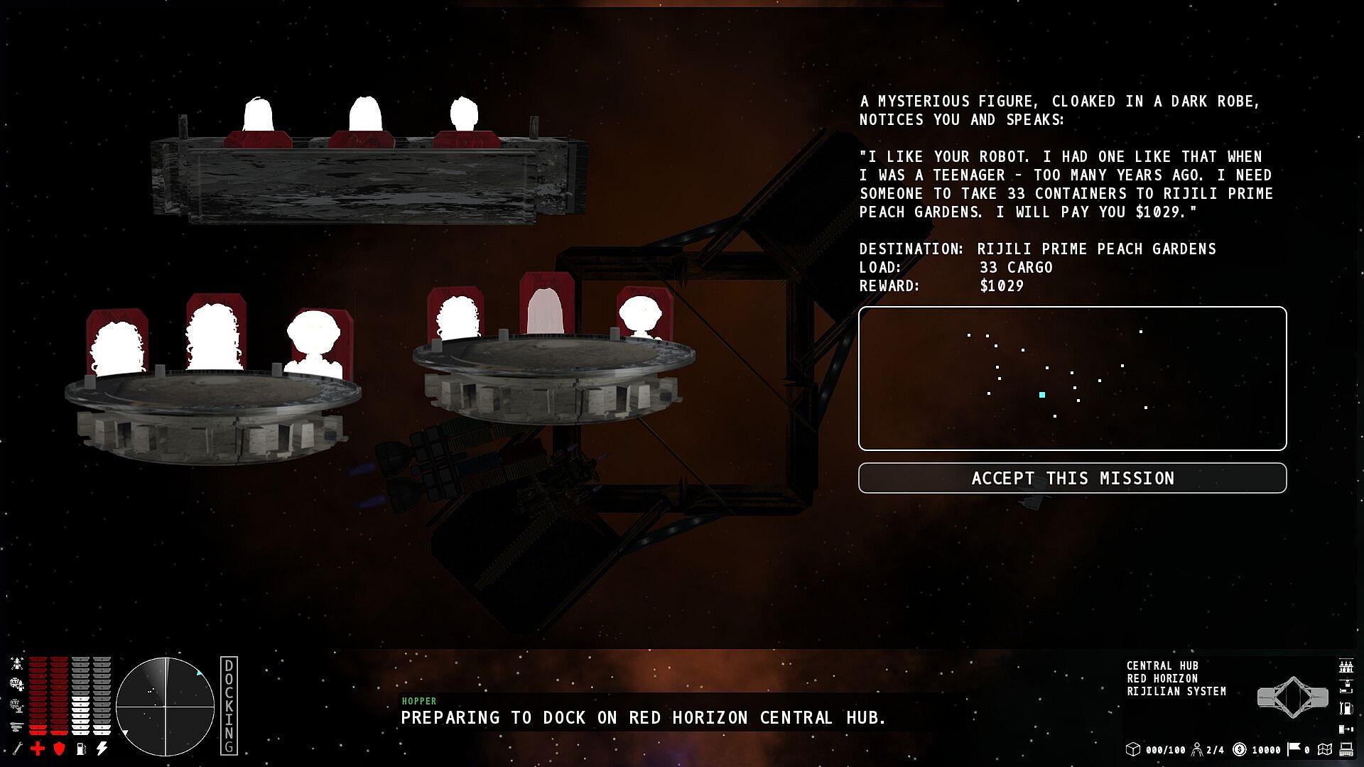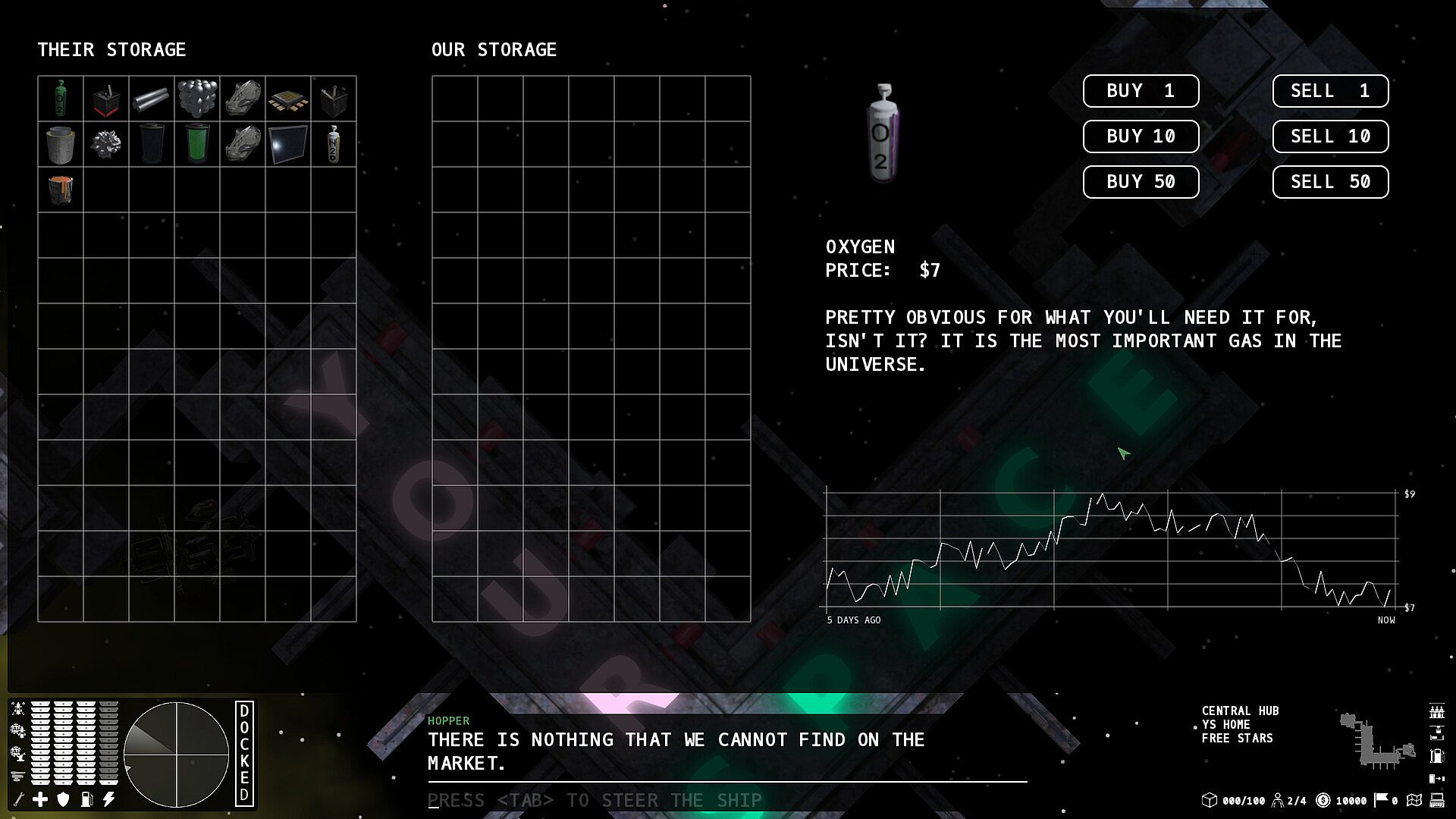 - You decide how you pay the bills for fuel and supplies: be a smart trader, solve rewarding quests or take missions from shady people in the space pub.