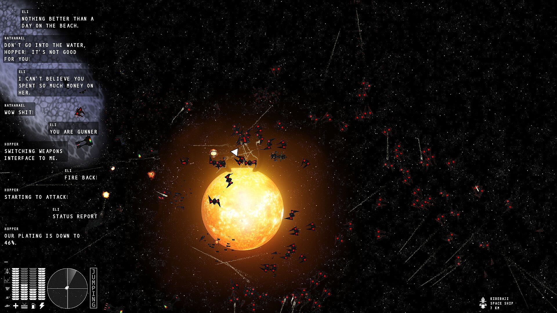You play Eli, a young man stranded on the antique star freighter Lucky Beggar. You hate space yet here you are. Your co-pilot is an AI assistant who understands your text-written commands and helps you to steer the ship, survive heavy space combat or to find the next gas station.