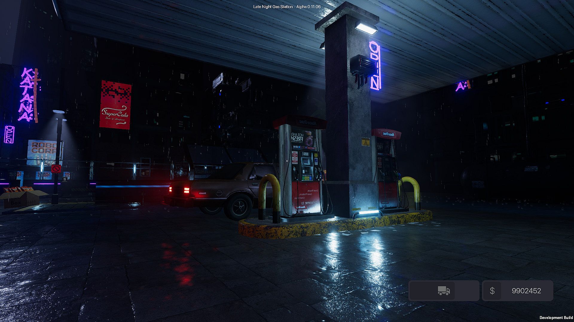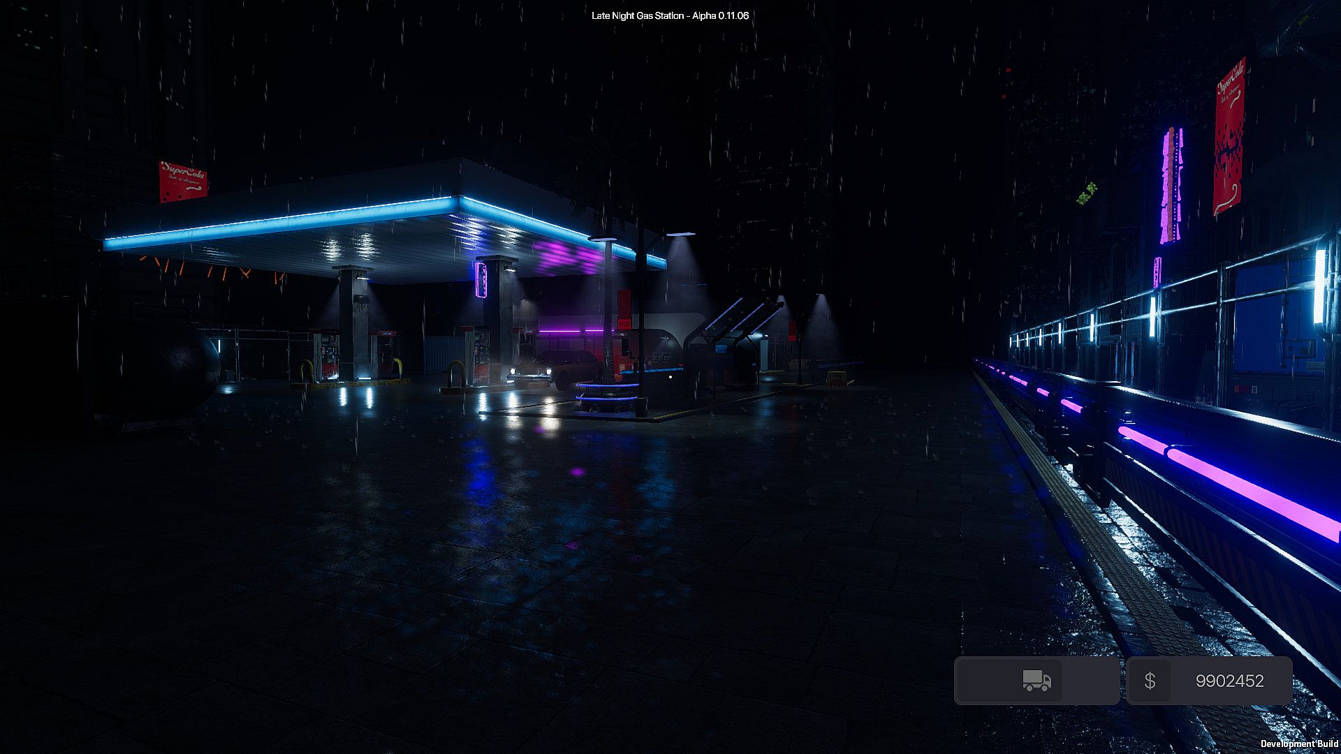 Late Night Gas Station is a first person simulator that is set in a beautiful night time, rainy environment.