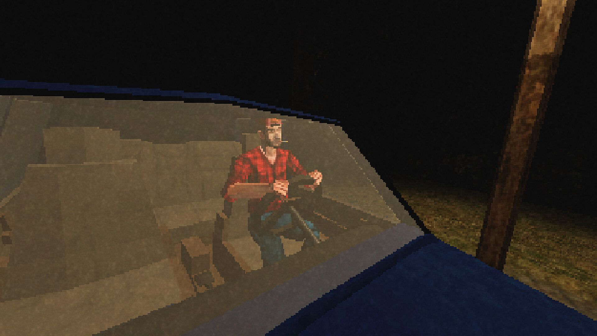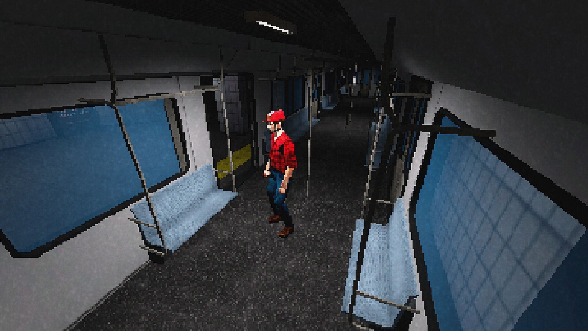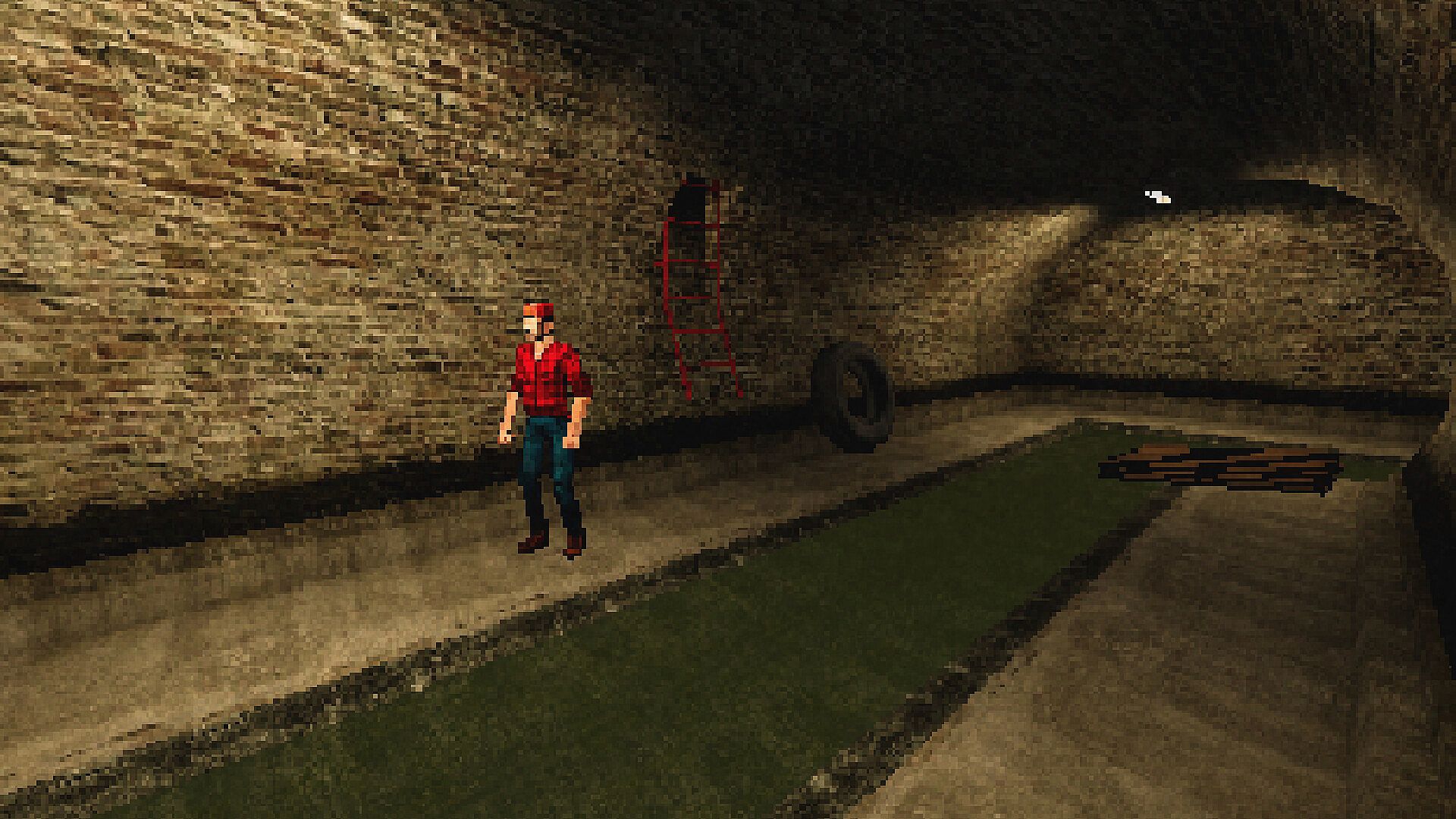 PSX-style visuals with fixed-camera survival horror atmosphere