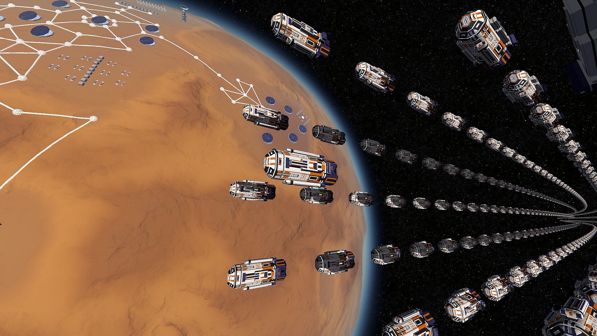 Your first launch may carry a handful of colonists and supplies to a barren moon, founding your first extra-planetary outpost. Years later, you command a fleet of hundreds of ships traversing the solar system, each one following a trajectory you planned, bound for a sprawling colony you designed.