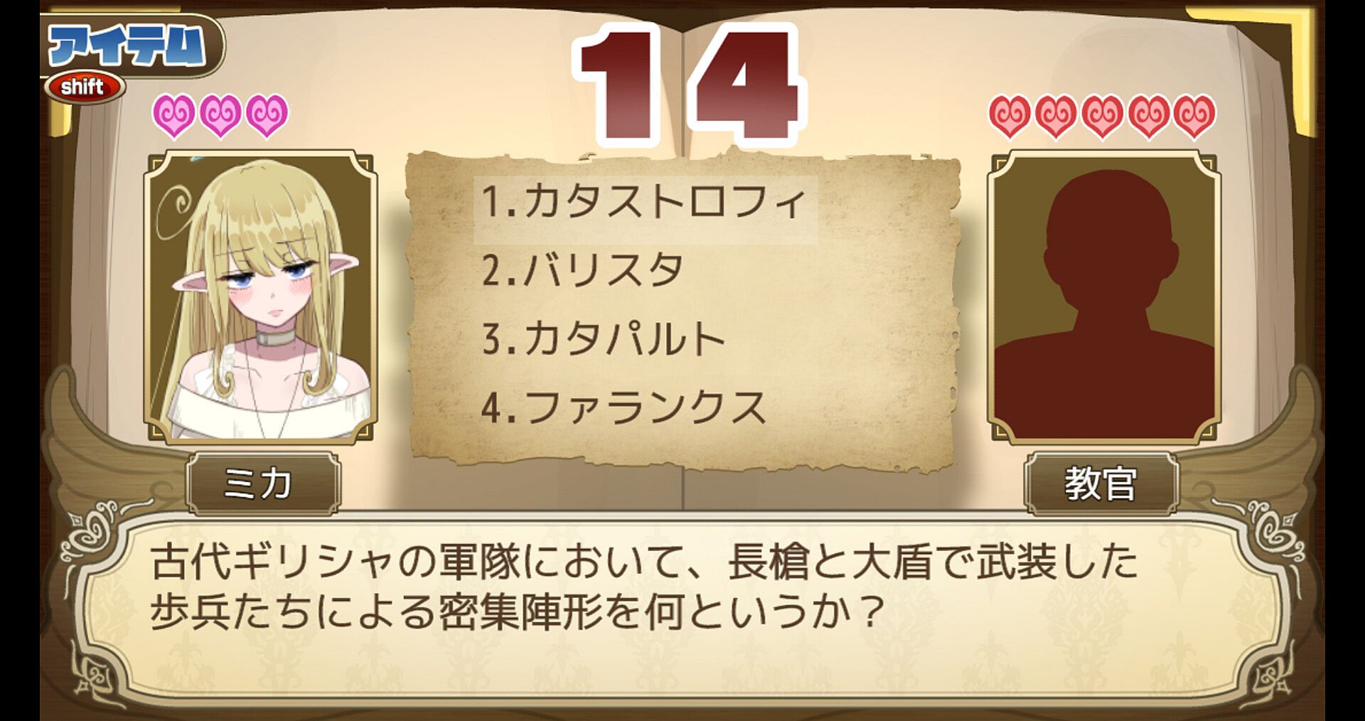 Within a time limit, pick the right answer out among the four choices to earn their trusts and gain some "Love"!
