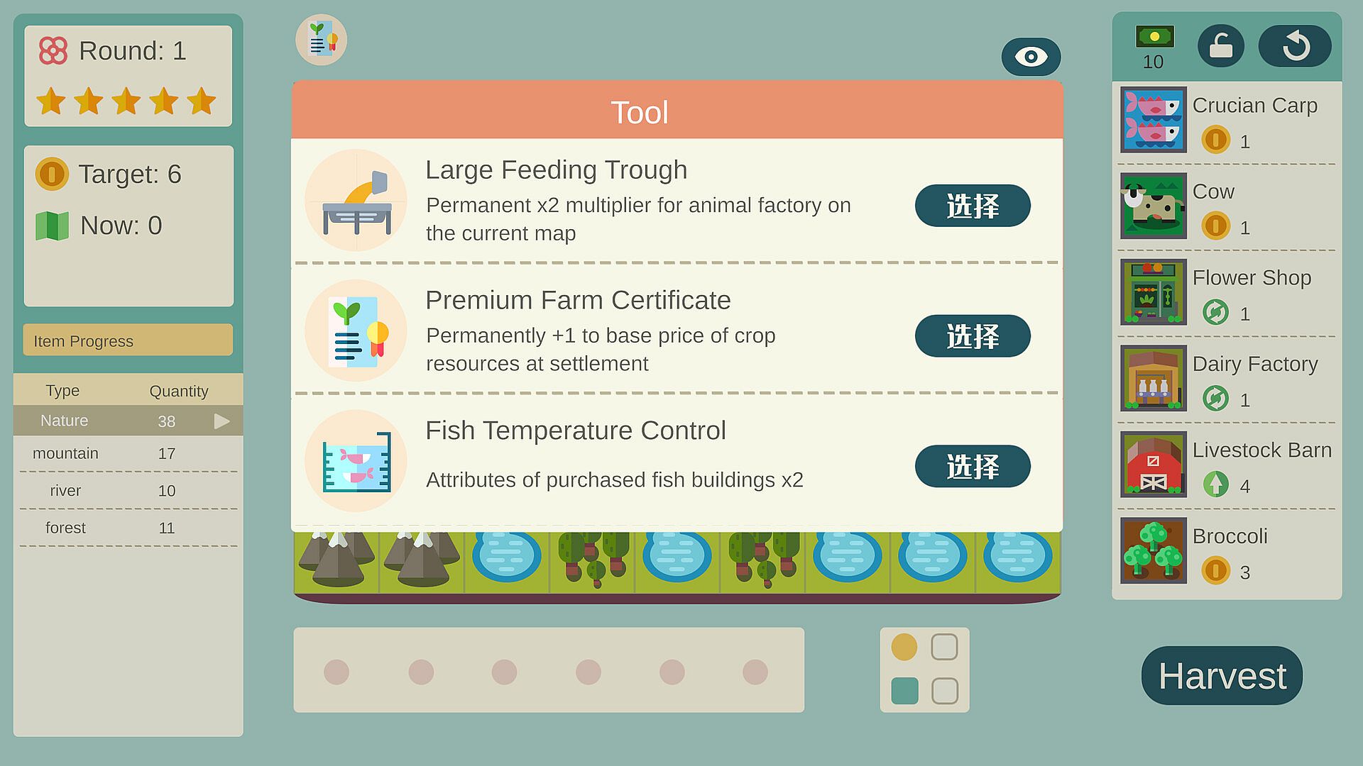 In each game session, every turn has a target gold income requirement. You need to select and purchase the appropriate buildings from the store and strategically place them to get bonuses to meet the income requirements. Moreover, you can continuously accumulate powerful item effects to further enhance the revenue from your buildings.