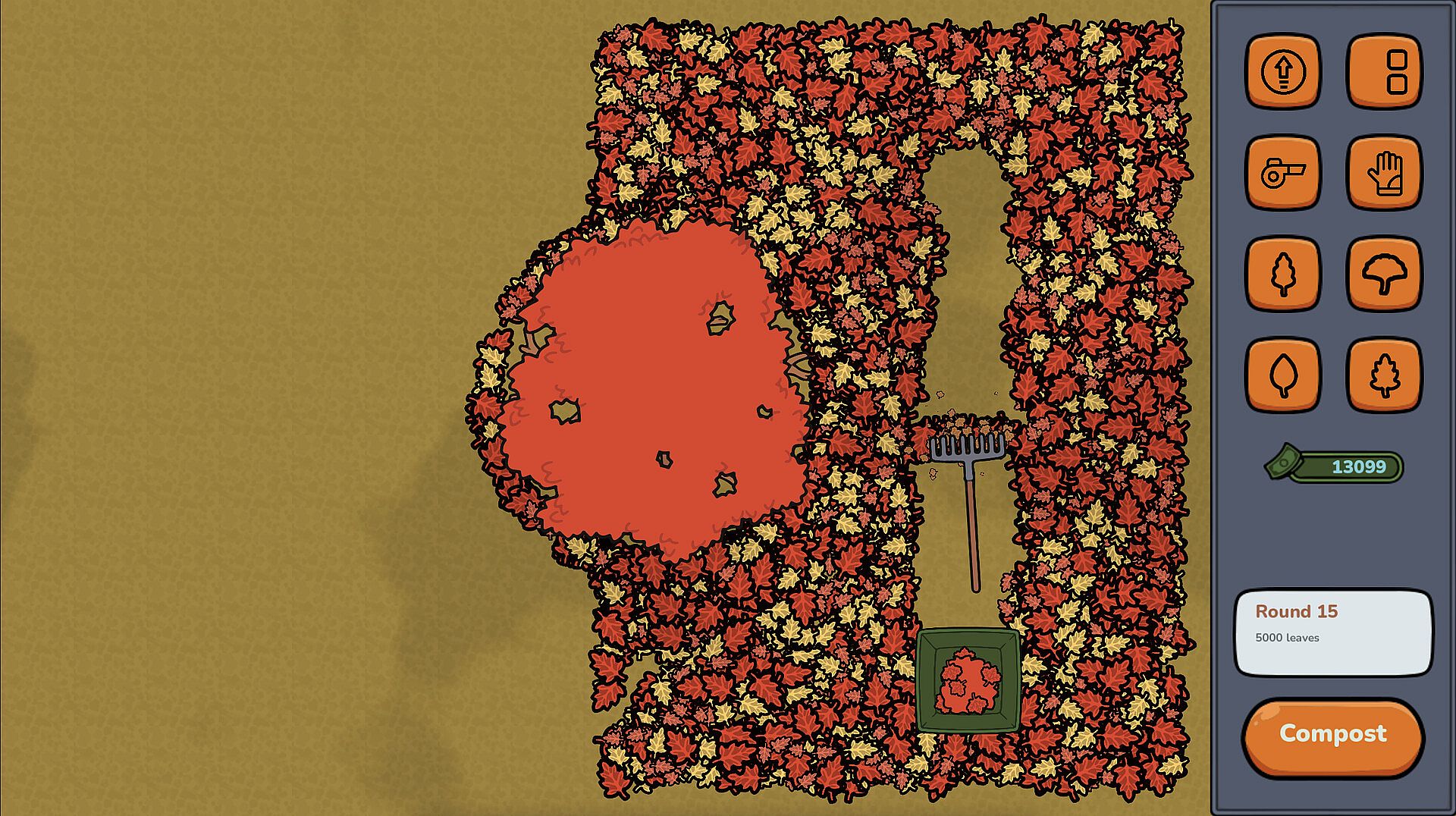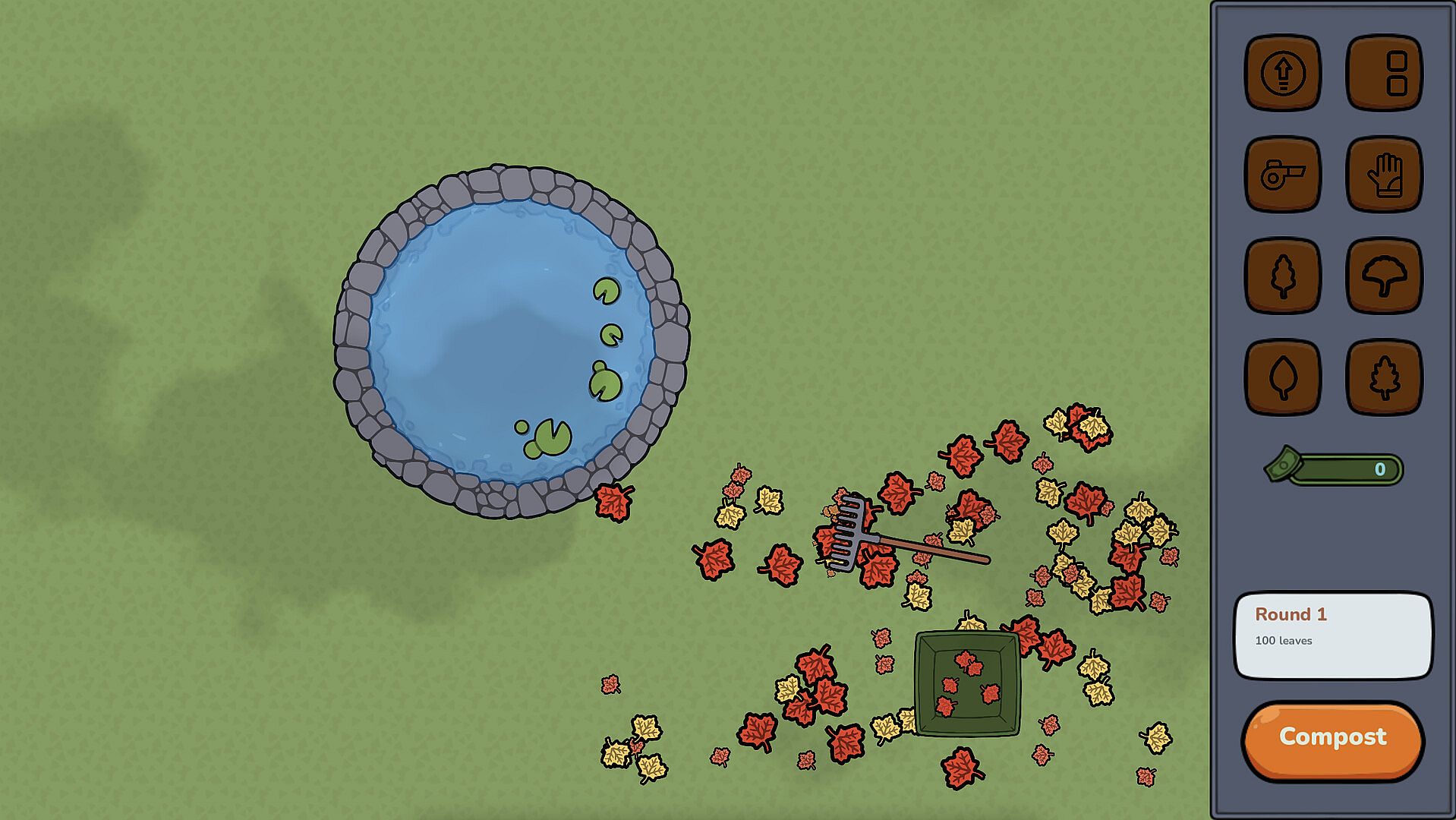 Clear each wave of leaves to progress through this satisfying yard-cleaning simulator