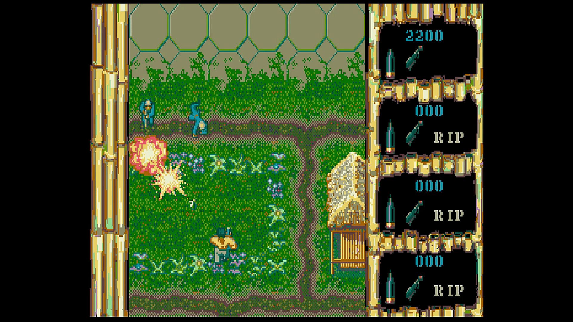 With up to 4 players in co-op play, advance as far as you can through enemy territory. Switch between a heavy machinegun (which has longer range), a light machinegun (which fires faster) and grenades (which do damage in an area and can be thrown over obstacles).This enhanced version introduces a number of modern features to this retro classic, including: