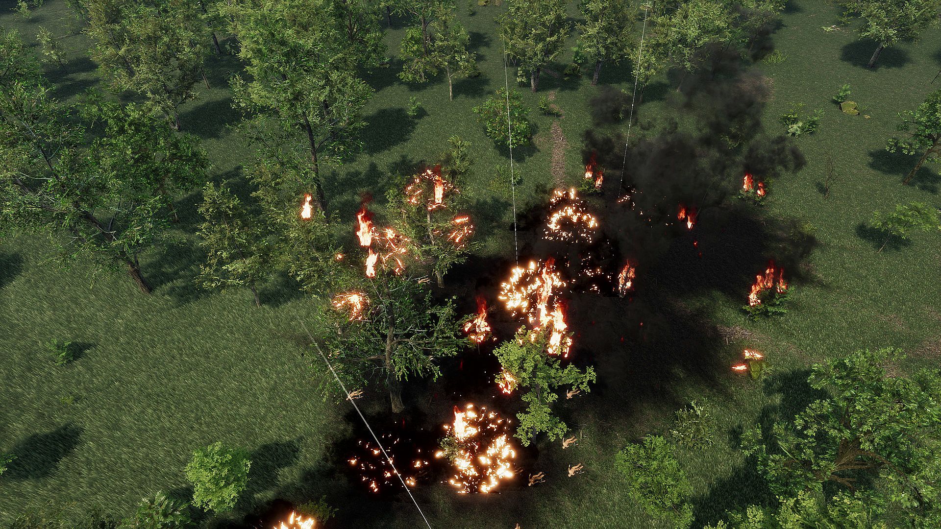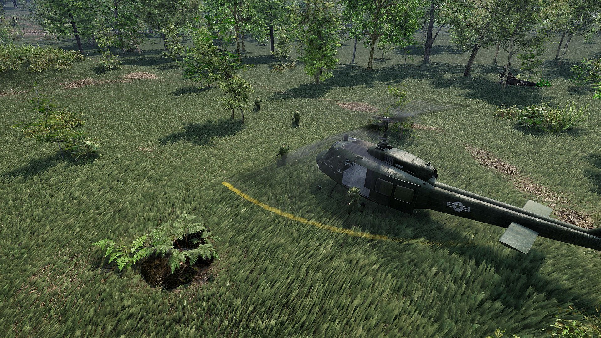 The terrain is modelled based on satellite data and historical maps with respect to playability. In the case of LZ X-Ray, it includes the proverbial terrain features which played a strategic role during the battle: ´dry creek bed´ as a main line of defense and ´termite hill´ which served as a command post of the American commander, Lt. Col. Hal Moore. The terrain and flora respect the reality of highlands of central Vietnam where the events of the game take place: plains and hills covered by thick grass and bushes with scattered woody areas.