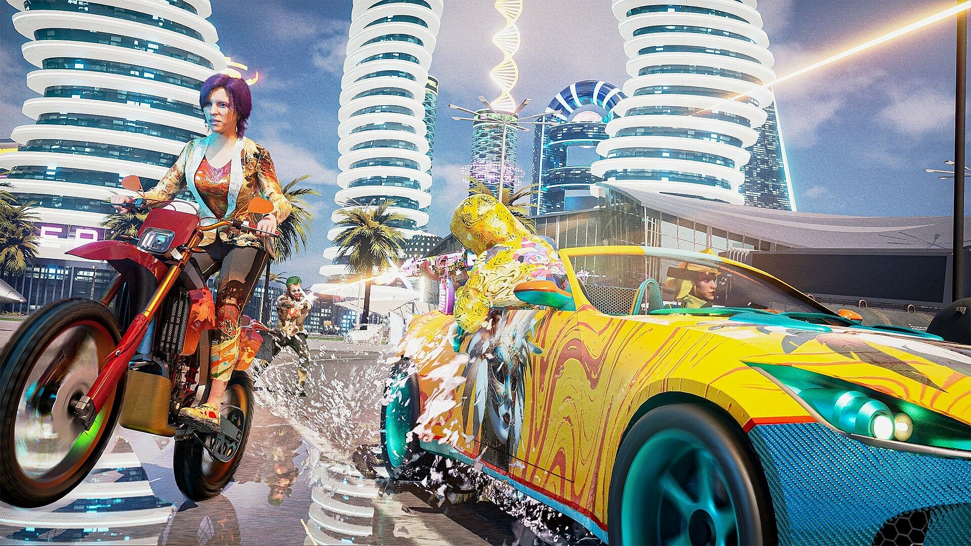 Immerse yourself in a hyper-realistic epic and deadly 400 km² neo-futuristic urban warzone, ENTIRELY HANDCRAFTED, featuring destructible environments and vehicles capable of reaching speeds up to 400 km/h, in solo PvE, co-op PvE, or PvPvE multiplayer, fast-paced third-person and first-person shooter game against AI opponents. Wield a vast arsenal of powerful weapons, from tactical knives, combat guitars and assault rifles to submachine guns, heavy machine guns, flamethrowers, grenade launchers and RPG-7s, not to mention laser-guided bombs and ICBM. Beware, in this vast and hostile environment, you can easily get lost, so stay close to your squad with your medical kit.