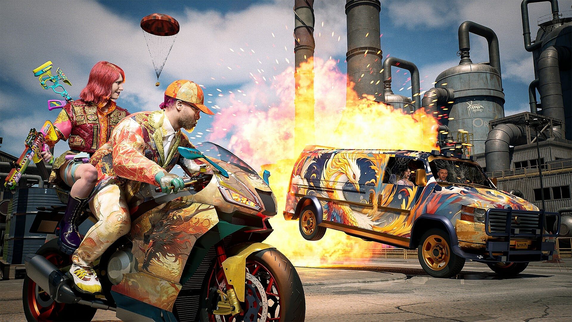 Enter the magnificent continent of Bellona DLC (400 km²) and the island of Aurora (25 km²) included in the app, both handcrafted with Unreal Engine 5.6, where hundreds of megacities sprawl across rocky deserts, each bursting with unique architecture, richly furnished interiors, cyberpunk basements, and combat-ready rooftops. Leap from buildings, parachute in vibrant patterns, or make a last-second escape using ziplines. But beware—ambushes await. And if you’re lucky enough to find a helicopter, prepare for aerial chaos: ride with your squad, rain down fire from above, and enjoy the view—until an RPG lights you up.