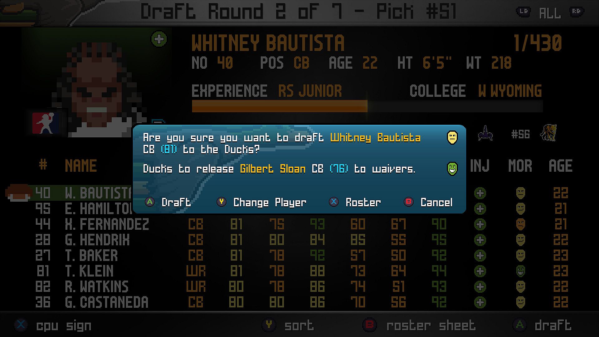 Legend Bowl brings you back to the glory days of pixel style football games of the past! Enjoy a hybrid of arcade-style football and simulation aspects on and off the field. Fully customize players and teams to create an endless amount of variety in your league. Sim-based controls with challenging gameplay mechanics bring the fight to your doorstep! Legend Bowl includes Exhibition Mode, Tournament Mode, Franchise Mode, Training Camp Mode, and a boat load of customization options.