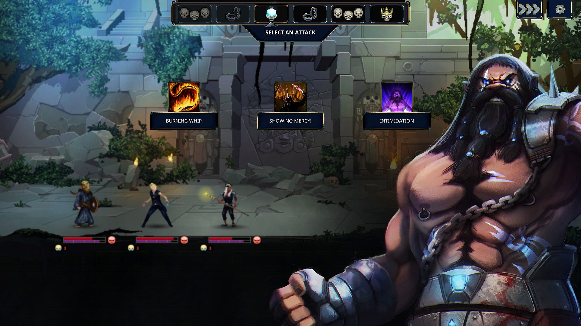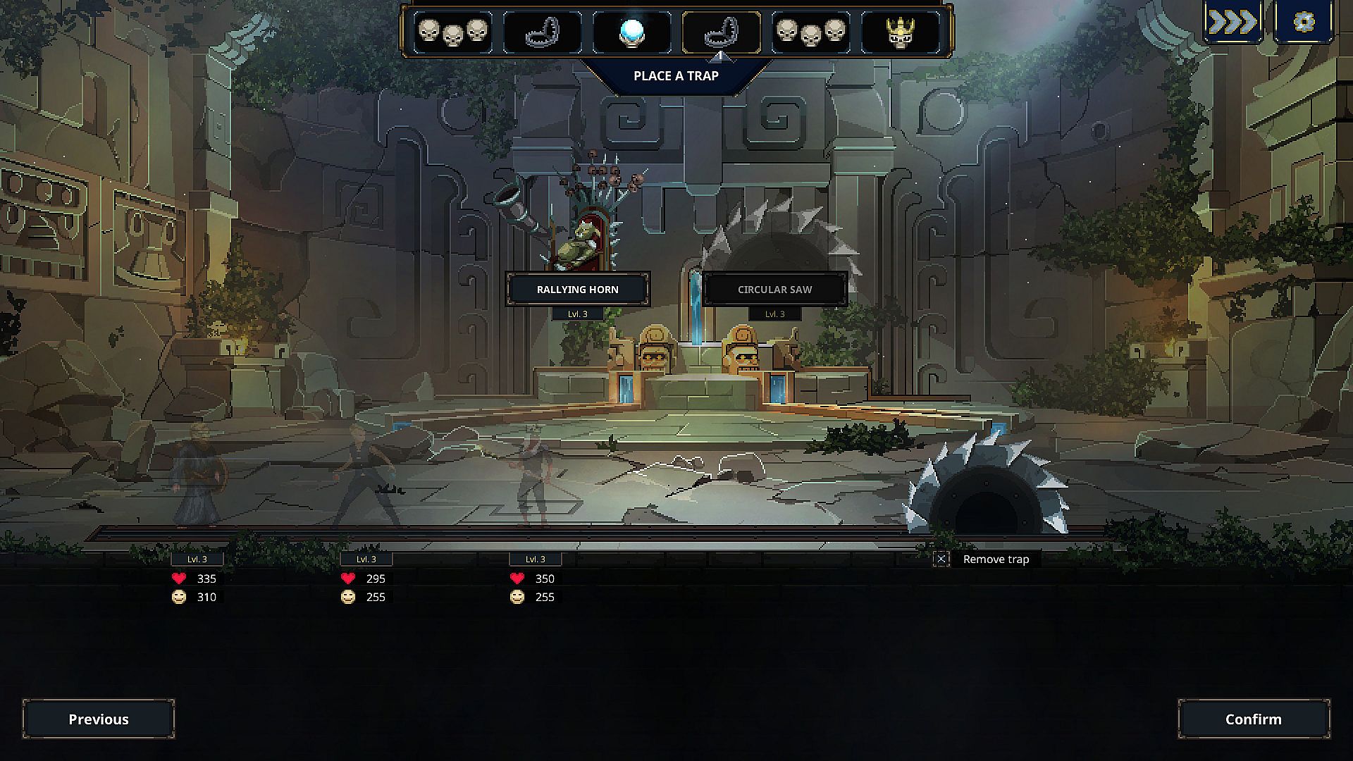 You will then be able to watch those heroes die! It's a reversed dungeon crawler, heroes will move through your dungeon and will trigger the traps you've placed. When a group of adventurers meets a group of monsters you've positioned in your dungeon, a turn-based fight will happen!