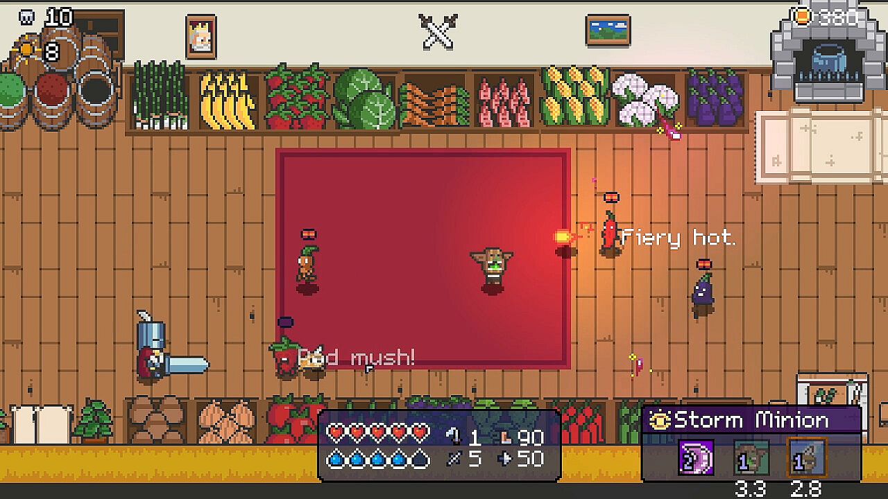 Survive the onslaught of arrows, fireballs, bombs, swords, slime ooze, and eggplant seeds that come your way - and then strike!