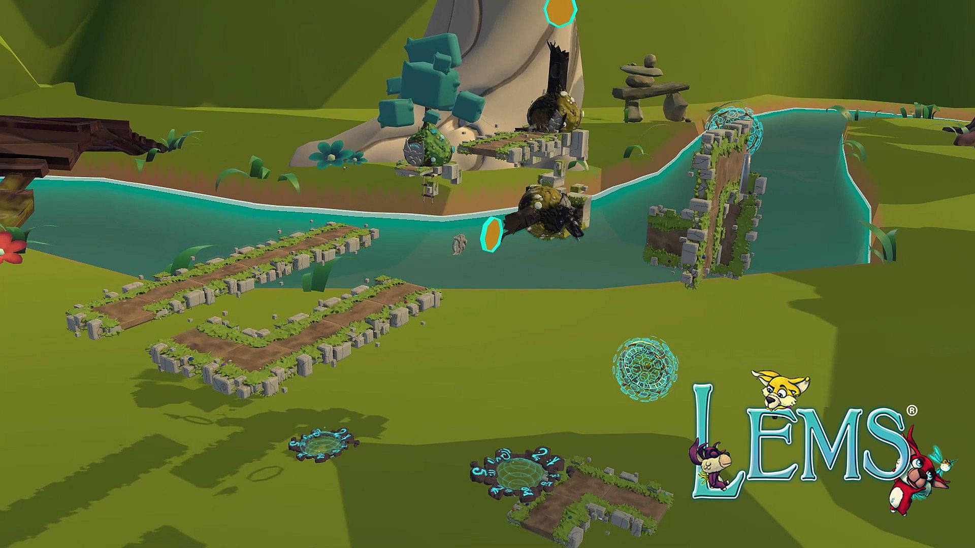 In order to succeed in his task, the player utilizes little platforms attached to his VR controllers that will follow their every movement. These platforms have unique properties (there are 4 different types of platforms currently in the game) and the player must use them in order to carry the Lems and make sure they arrive to destination.