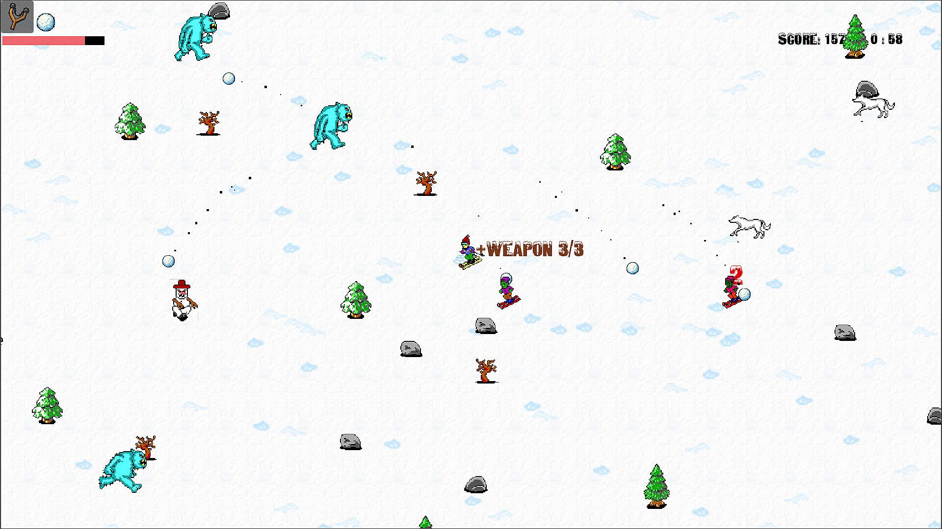 Remember that old skiing game where a yeti inevitably ate you? Now imagine you have a machine gun (well, a rapid-fire snowball thrower) and the yeti brought 9 types of friends.