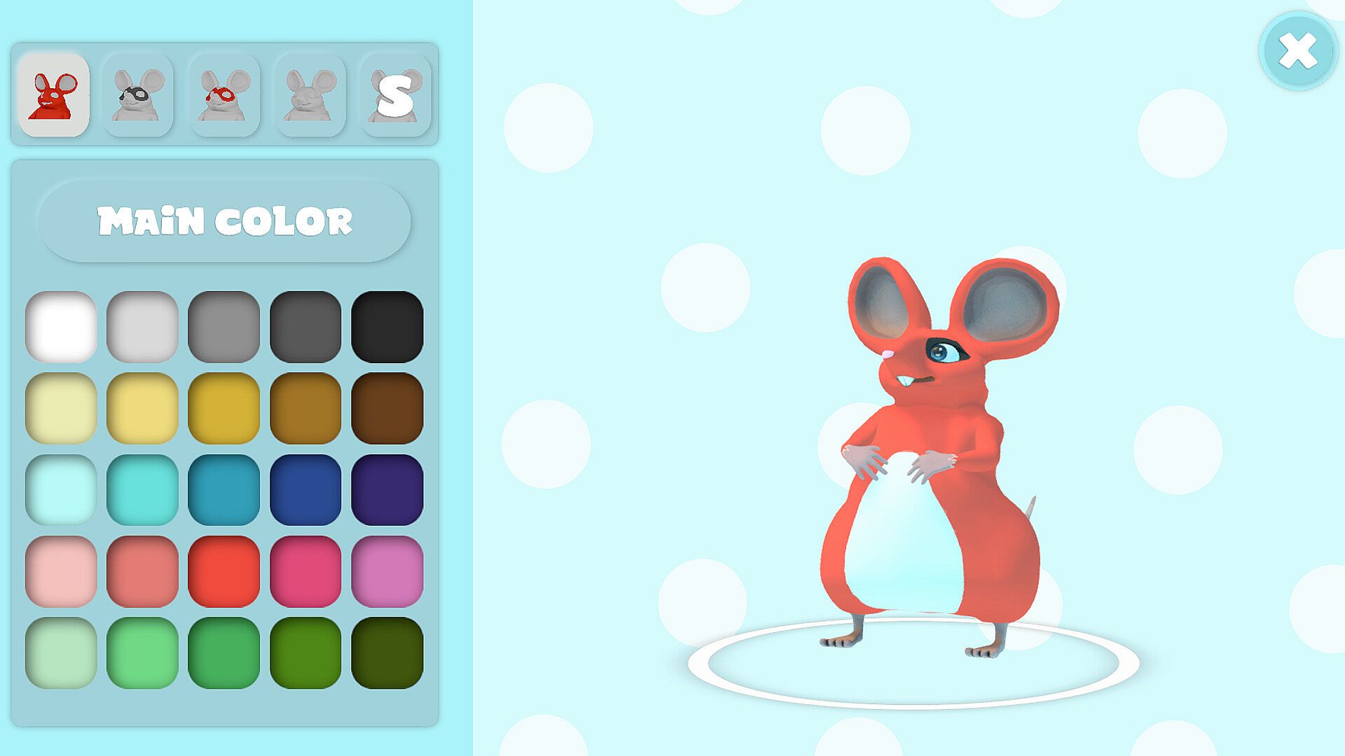 Create and personalize your mouse to your own liking. Change color, pattern or even the size of the ears, cheeks and teeth.