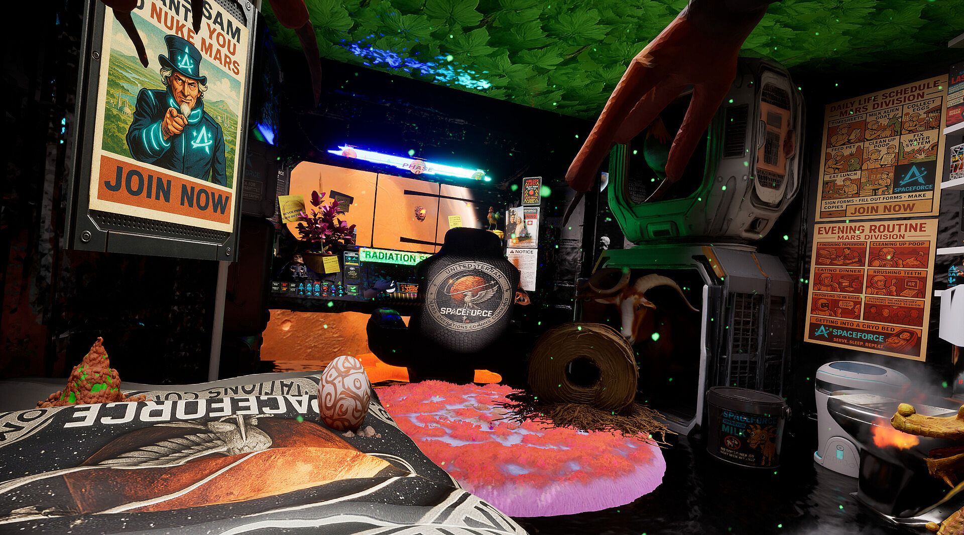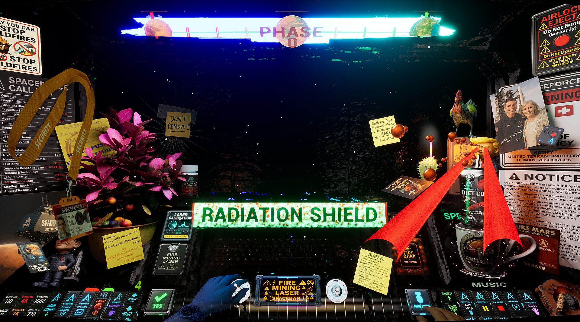 In this darkly satirical sci-fi simulation, your job is to push big glowing buttons, listen to questionable voice messages from your space-mom, and carry out increasingly absurd orders from your corporate commanders — all while navigating exploding volcanoes, malfunctioning AI assistants, and dangerously adorable alien livestock.