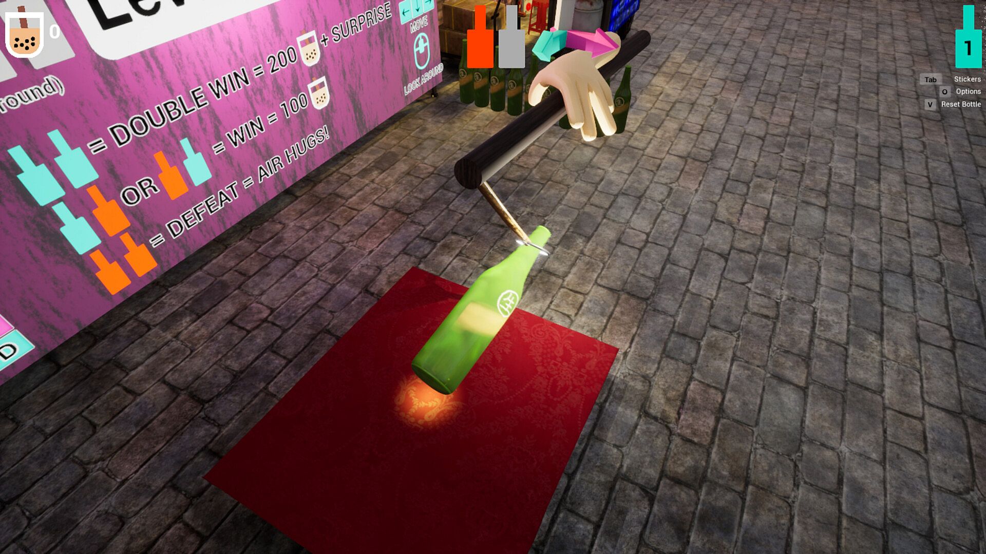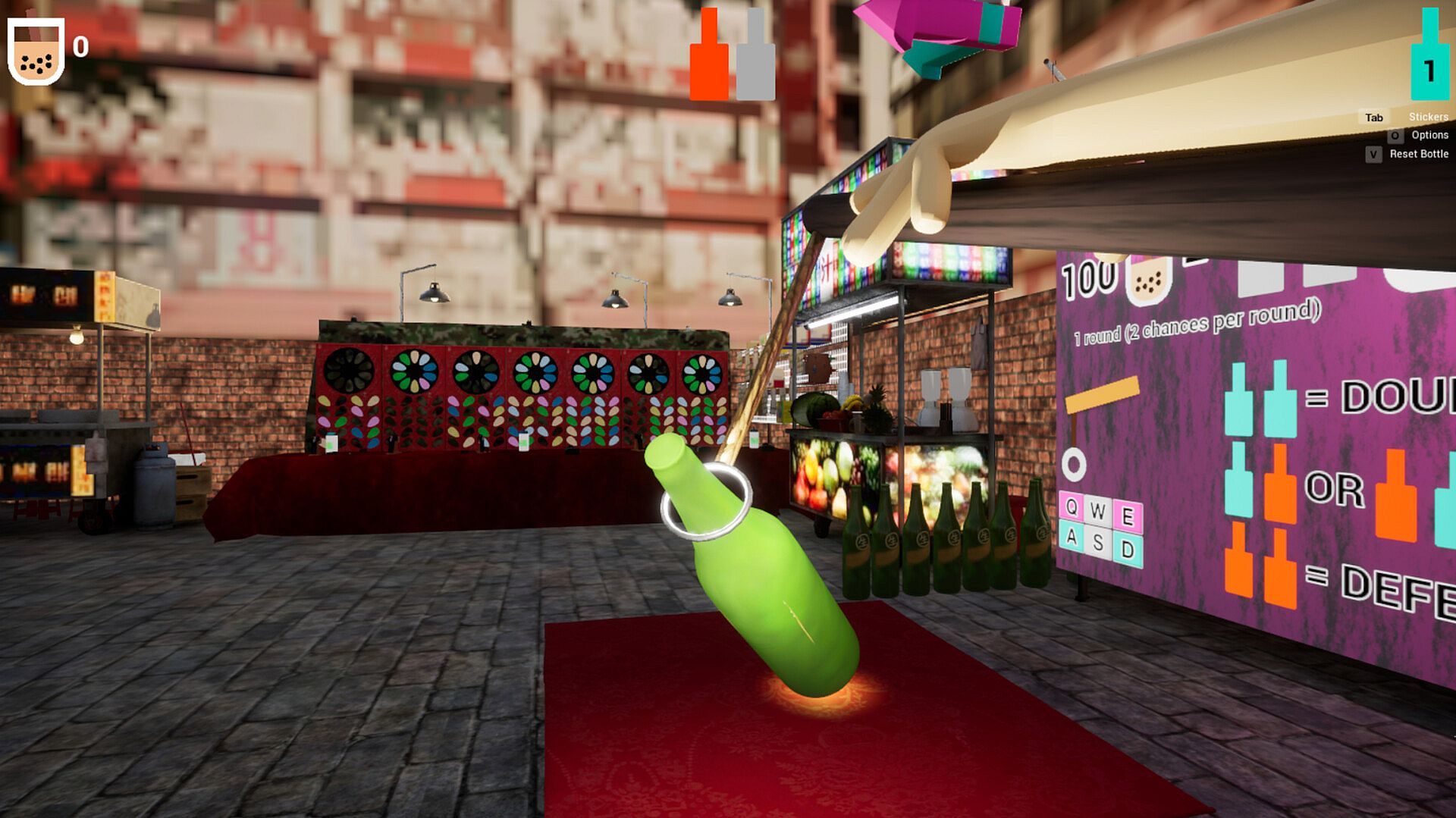 "Levantar La Botella" means "stand the bottle", a classic Taiwanese night market game where you use a ring hanging from a stick to skilfully lift a bottle into a standing position.