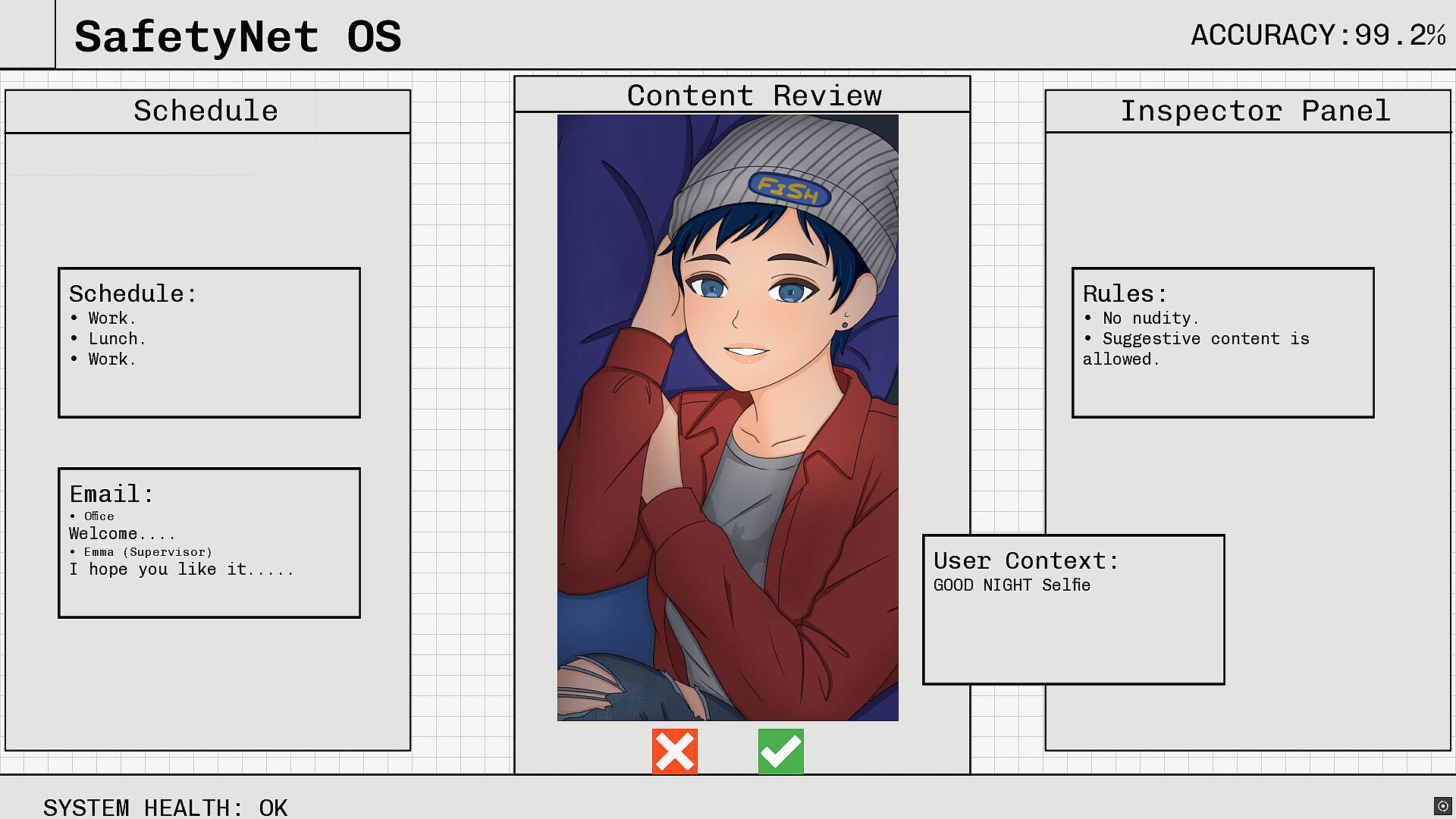 As you review posts and handle shifting platform policies, your performance starts to matter, not just to the company, but to Emma. New responsibilities, and subtle changes in tone blur the line between work and something else.