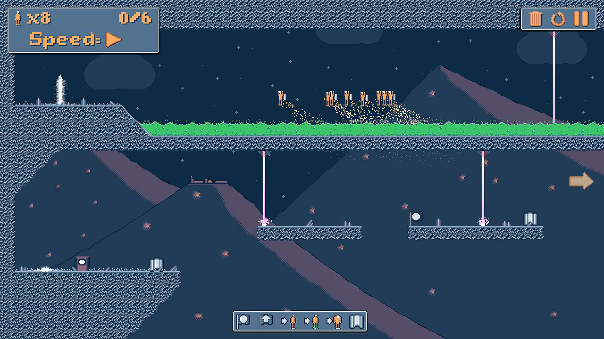 Guide comrades to freedom in this indie puzzle game by deploying flags that steer their paths. Alter genetic codes to unlock special abilities, strap on jetpacks for fresh movement options, and bend gravity to conquer tough spots. Sacrifices sometimes pave the way forward, with every tool fair game across more than 50 levels in four distinct worlds.