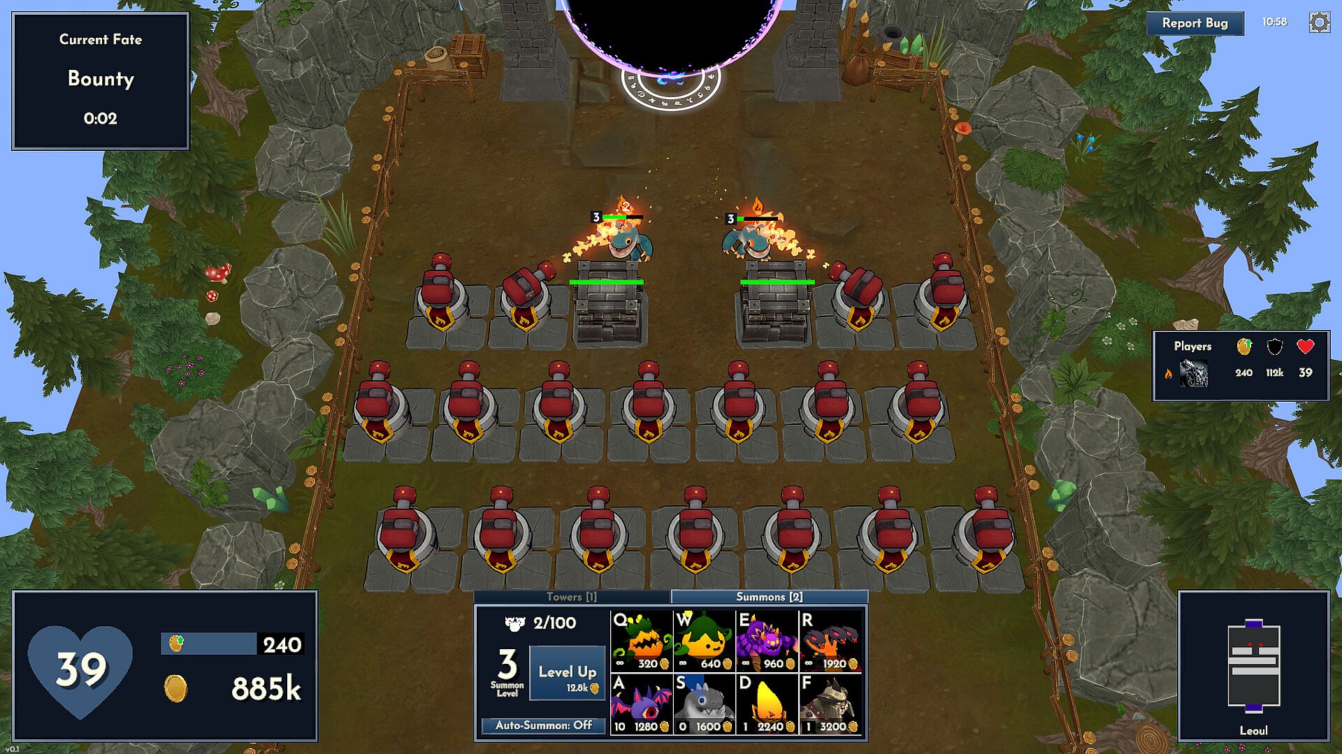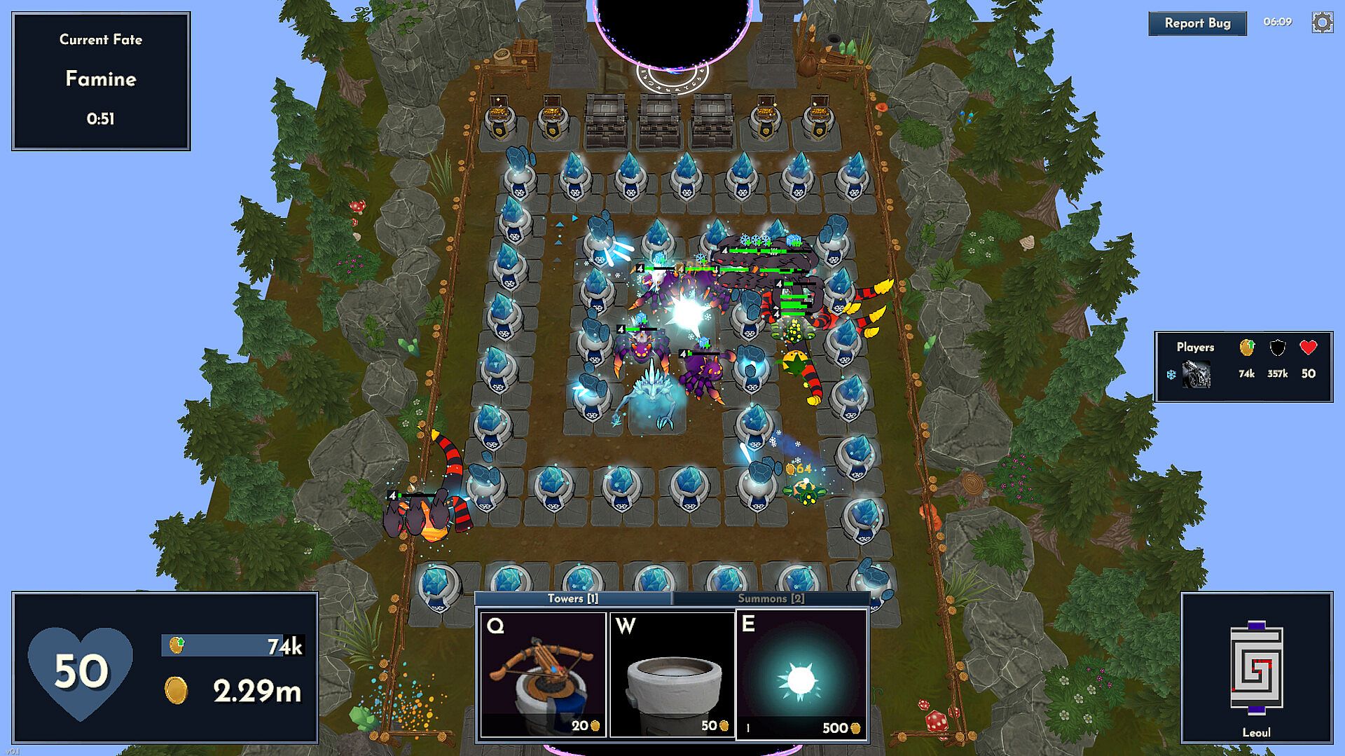 Instead of fixed waves like in other tower defenses, you choose the enemies that will siege your opponent's base! Outwit the other players by choosing when to summon units that bolster your economy for a late game win and when to pressure their defenses with units with special abilities and attacks.