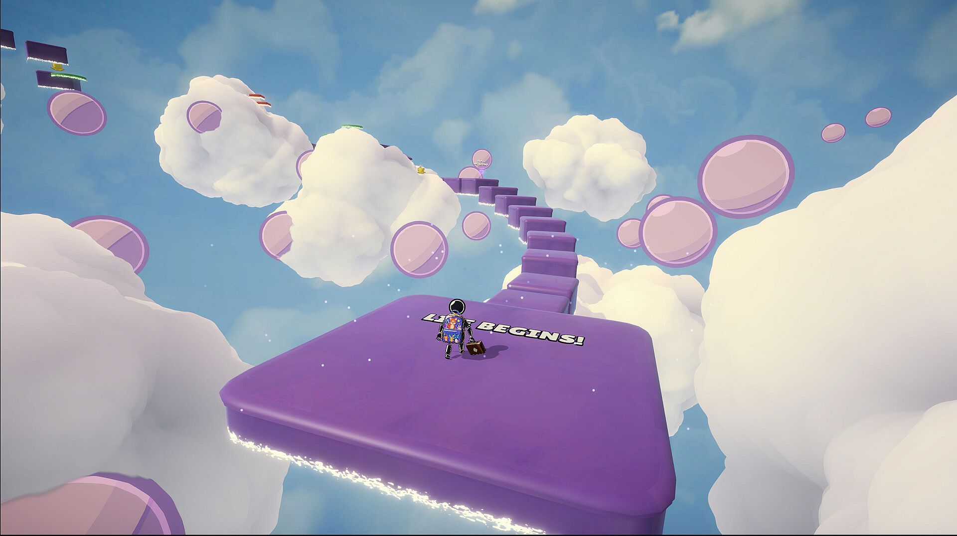 You're climbing the Tower of Life - a massive spiral representing your journey upward. Each platform is a moment, each jump a decision, and each fall... well, gravity doesn't care about your accomplishments.