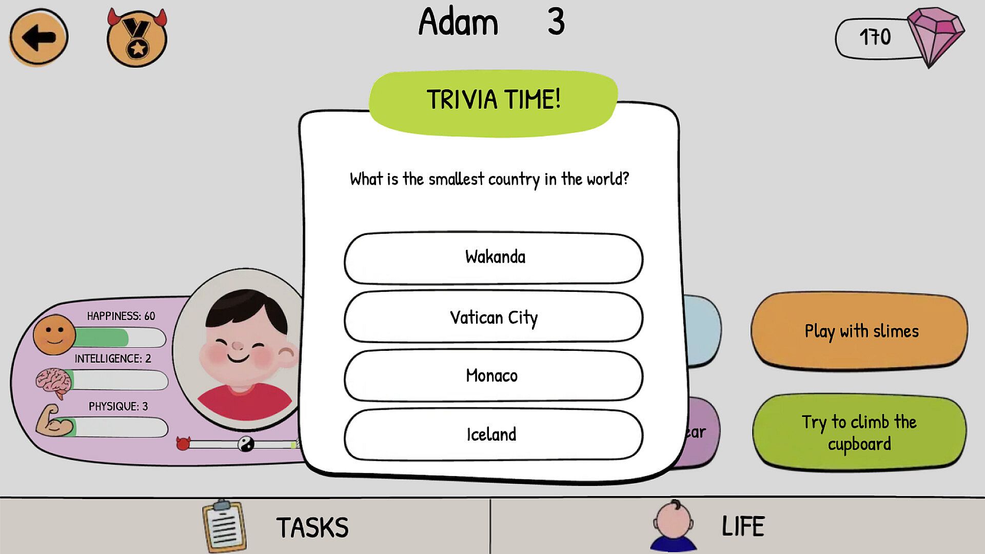 Dive into the vibrant world of Life Choices, where you guide characters with distinct abilities, dreams, and ambitions. Manage their intelligence, creativity, and strength as you help them achieve their goals—be it becoming a doctor, artist, scientist, or even a superhero. Or, if you dare, explore the darker paths life has to offer.